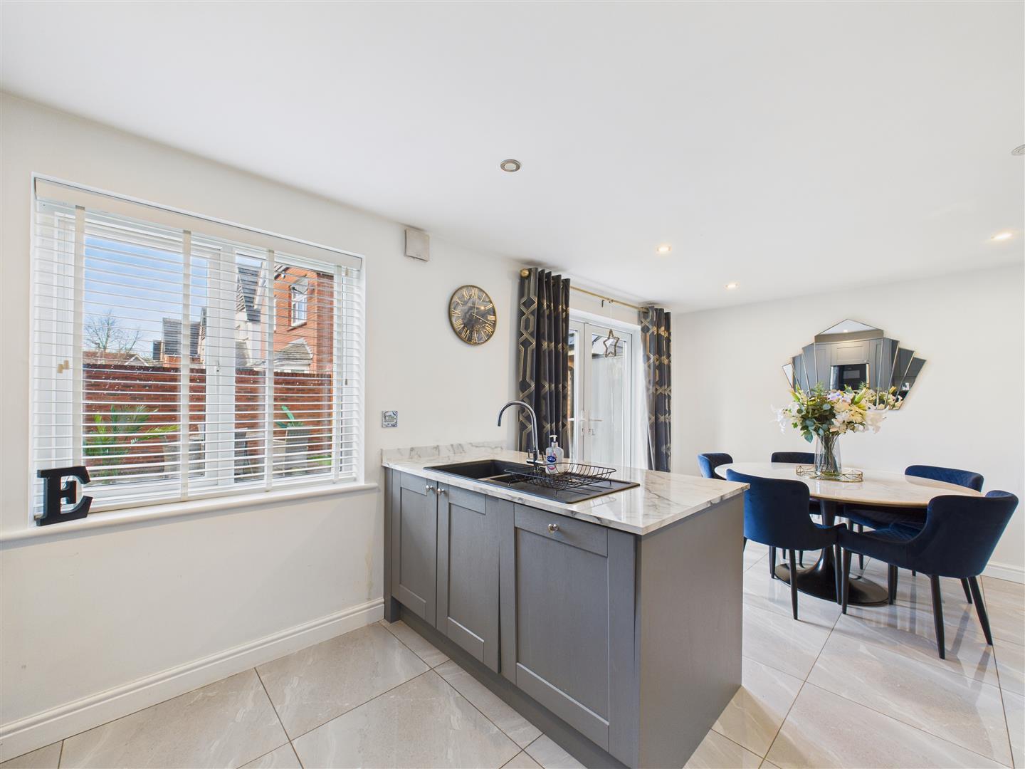 Dining Kitchen - Situated to the rear of the property, the kitchen has an excellent range of stylish shaker style units with complementing worktops incorporating a one and a half bowl sink and drainer, NEFF oven, microwave and induction hob with filter hood above. There is an integrated dishwasher and fridge/freezer. A cupboard to the corner has plumbing for a washing machine. Tiled floor, inset spot lights and French doors lead out to the rear garden.