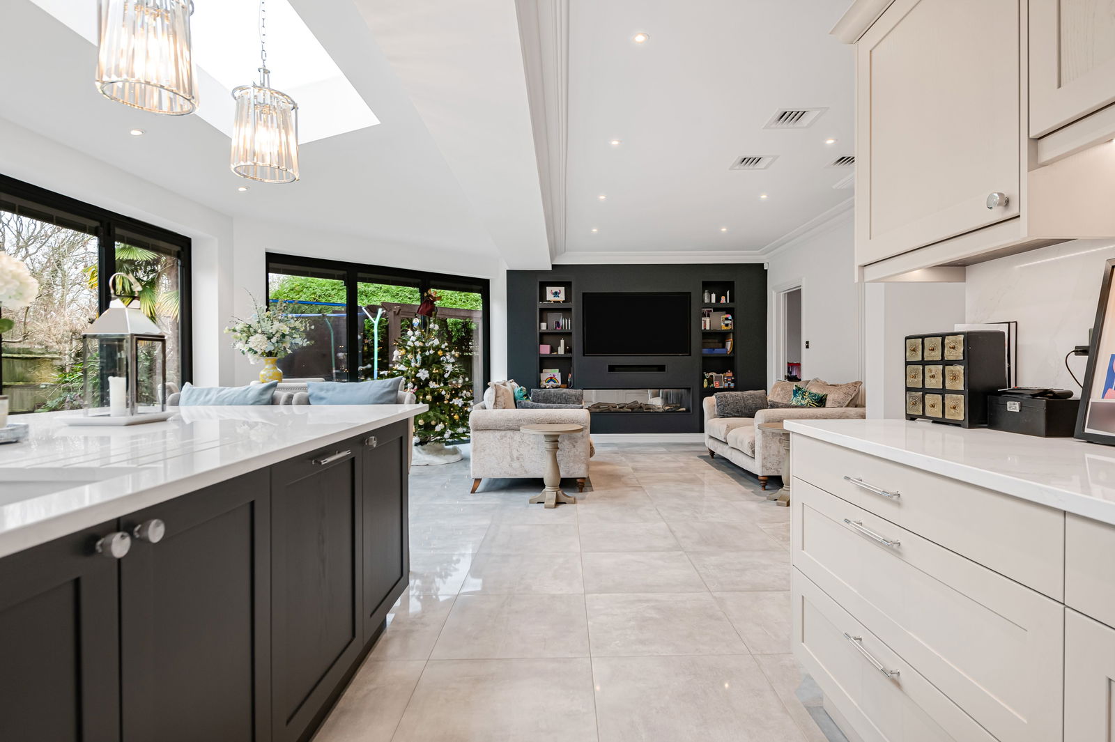 - KITCHEN MEDIA WALL WITH FEATURE FIREPLACE
