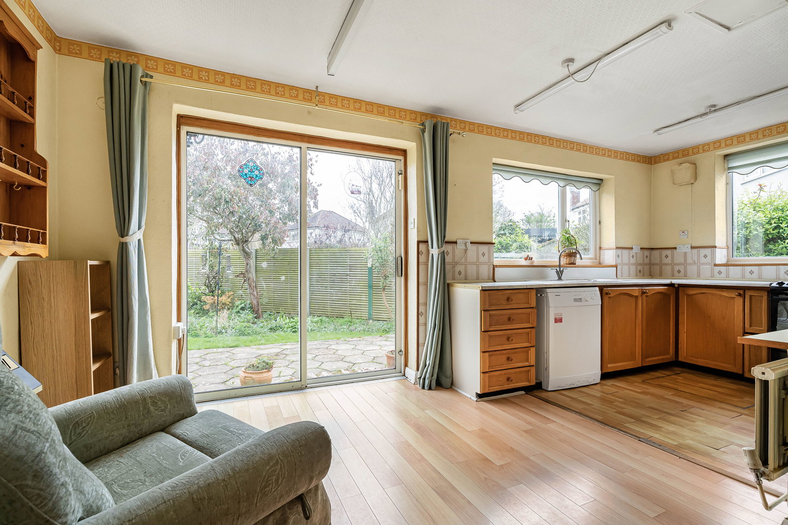- Open-plan kitchen and dining area to the rear
