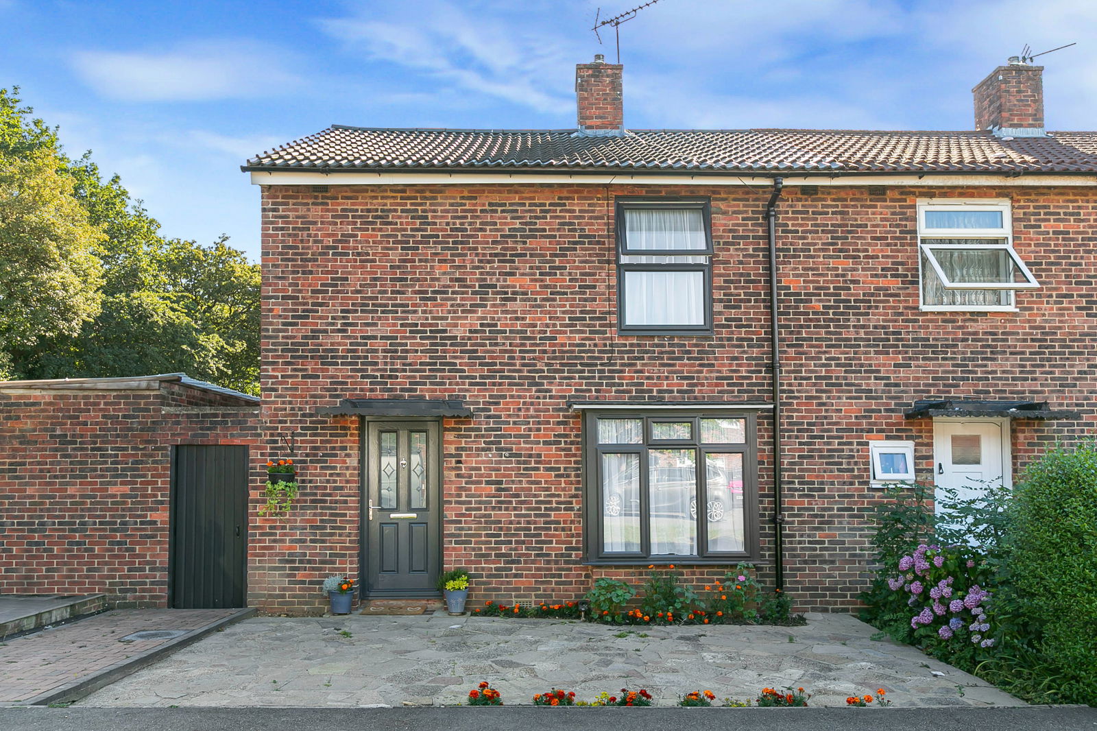 Outside, the property benefits from a large patio area, ideal for al fresco dining or summer barbecues, leading to a well-kept, flat garden – great for children, pets, or relaxing in the sunshine. As an end-of-terrace, the house also enjoys side access and extra privacy.