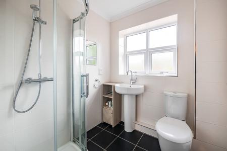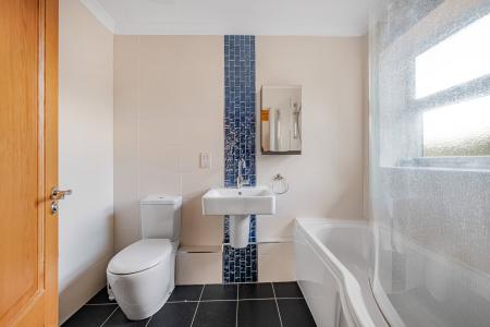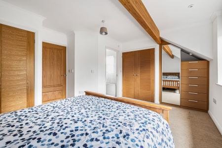 The first floor offers three well-proportioned double bedrooms, including a spacious master bedroom which benefits from a modern en-suite with bath and shower. The remaining two double bedrooms are served by a well-appointed family bathroom, all finished to a high standard in keeping with the rest of the home. Ample built-in storage is provided throughout.