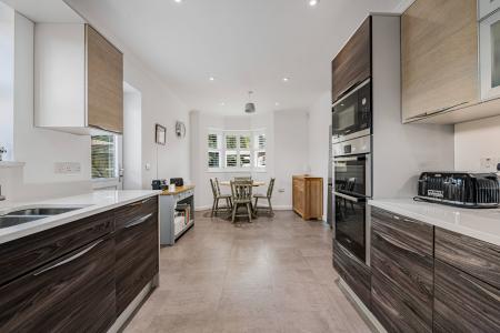 The accommodation is well planned and generously proportioned. A welcoming entrance hall leads to a spacious kitchen/breakfast room, fitted with a range of contemporary units and fully integrated appliances, providing a stylish and practical space for cooking and entertaining. To the rear of the property there is a bright and comfortable living room, ideal for everyday family living with double doors which open onto the rear garden, enhancing the sense of space and light.