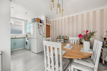 The ground floor features a tastefully decorated living room, complete with a charming fireplace, creating a warm and inviting space to relax. To the rear, there is a modern fitted kitchen/dining room, thoughtfully designed with ample storage and workspace, perfect for everyday living and entertaining. This opens into a bright conservatory, providing additional reception space and direct access to the flat rear garden. A convenient downstairs cloakroom adds to the practicality of the home.