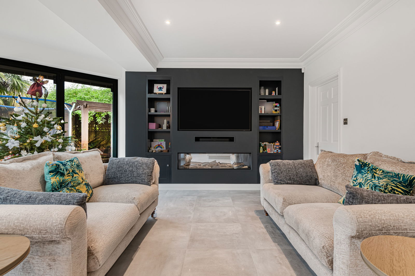 - KITCHEN MEDIA WALL WITH FEATURE FIREPLACE