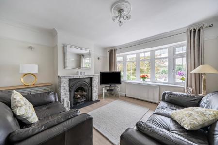 The front aspect lounge is a warm and comfortable space, highlighted by a feature ornate fireplace and bay window that fills the room with natural light. This is a perfect setting for enjoying cosy evenings together or entertaining friends.