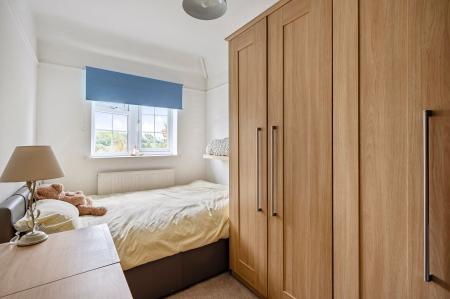 Stairs lead to the first-floor landing where three spacious bedrooms await. The principal bedroom enjoys a front aspect with ample room for wardrobes, while the rear aspect bedroom offers a peaceful outlook over the garden. A further generous bedroom to the front provides flexibility as either a children’s bedroom, guest room or home office as required. The bedrooms are served by a stylish and contemporary family bathroom, fitted to a high standard with modern fittings and appealing décor.
