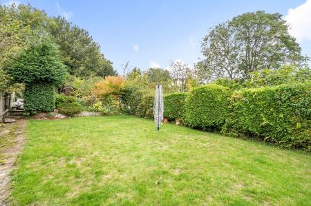 The rear garden has a paved patio area provides plenty of room for outdoor dining and entertaining, with steps leading up to a mature lawn bordered by hedgerow.