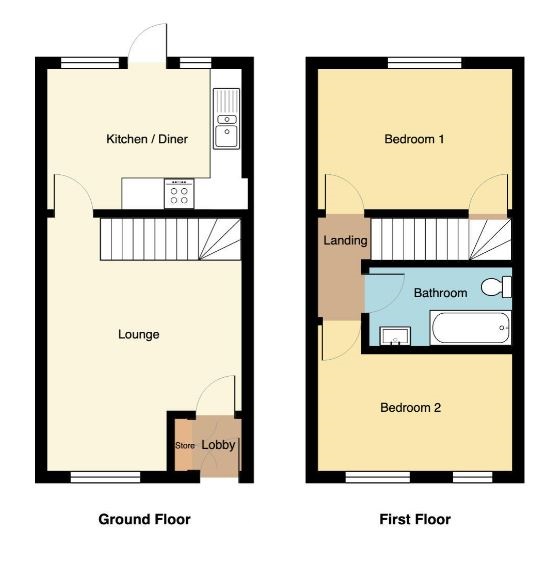 Entry to the property is via an entrance lobby with useful cloaks cupboard. The living room enjoys an outlook to the front and is warmed by a wall mounted electric heater. Stairs lead to the first floor and a door opens through to the kitchen/diner. Finished to a high standard the kitchen includes a range of base and wall units with built in electric oven and induction hob with space for fridge freezer, washing machine and slimline dishwasher. A door leads out to the rear garden.