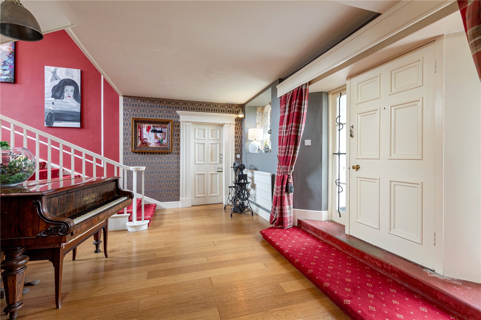 The main entrance is to the front of the property via a traditional, solid wood door which leads into a large entry hall, where a sweeping staircase rises to the first floor. There is also a useful WC and separate cloak cupboard, ideal for the storage of coats and boots.