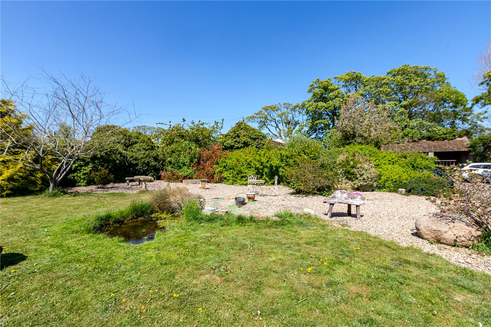 Returning to the hallway, to the right hand side lies the spacious living room, which enjoys stunning dual aspect over the property's land and has a door which leads to the garden. Character is abundant through beams to the ceiling, while the room is warmed via a multifuel stove, which is recessed into an inglenook with a wooden mantel over.