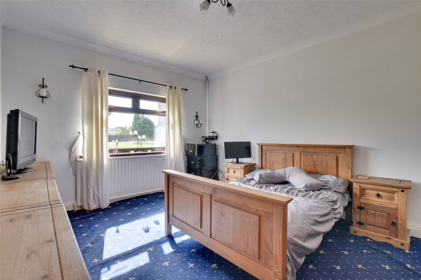 Externally, the property has secured gated access which leads to a driveway and offers extensive parking to the front and side of the property. To the front of the property, there is a large, open plan garden which is lawned with a hedge boundary to the roadside and a mature trees. There is also a pleasant conservatory which has an external entrance only, ideal as a sun room.