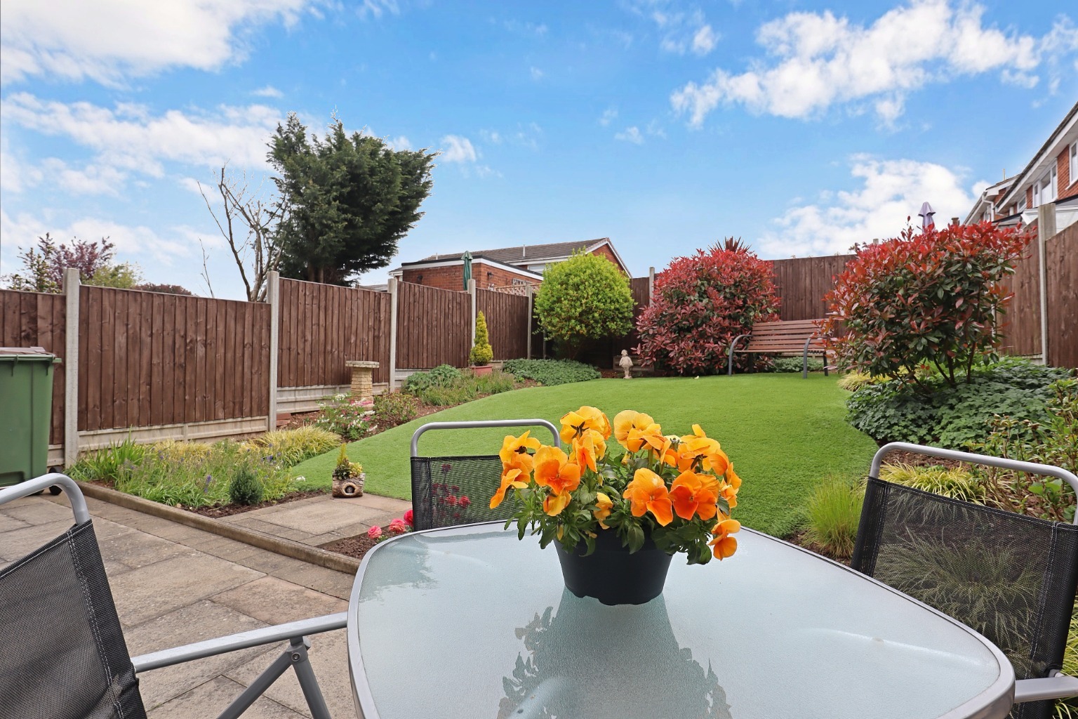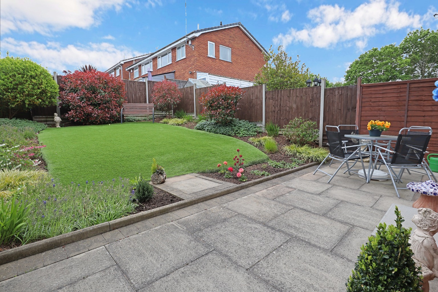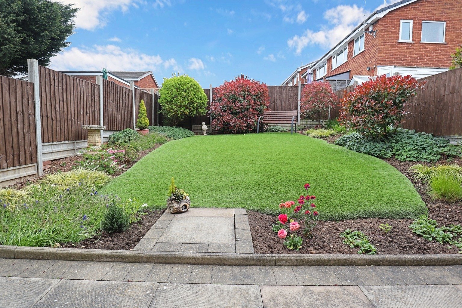 GardensThe rear garden has a paved patio area, artificial lawn, boarders with light shrubbery, fenced boundaries and side pedestrian access gate.
