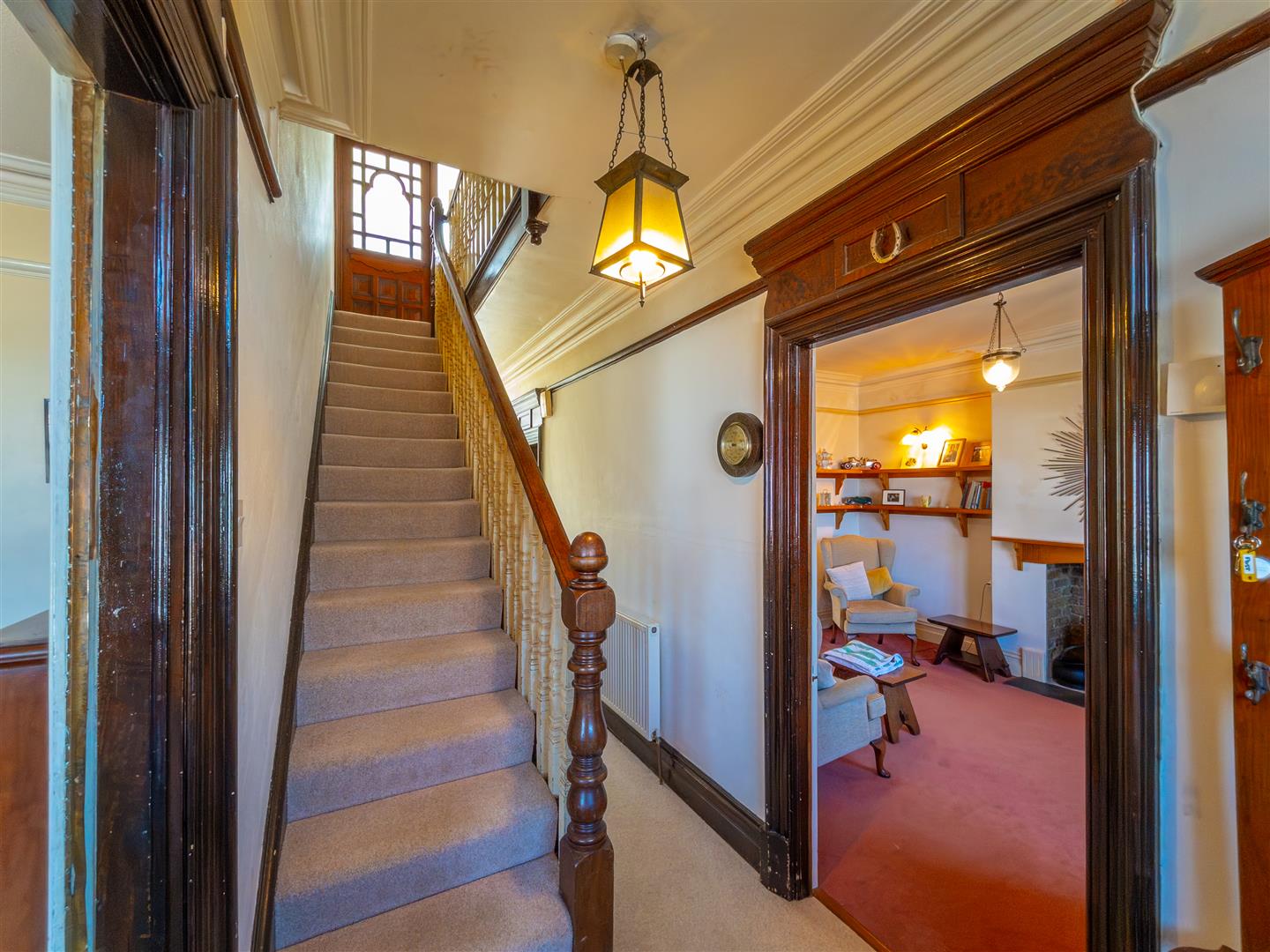 Highlights include a welcoming sitting room with a wood burning stove and a wonderful outlook towards the bay, a dining room with decorative fireplace and sea views and the master bedrooms, with bay windows, enjoying an enviable marine outlook.