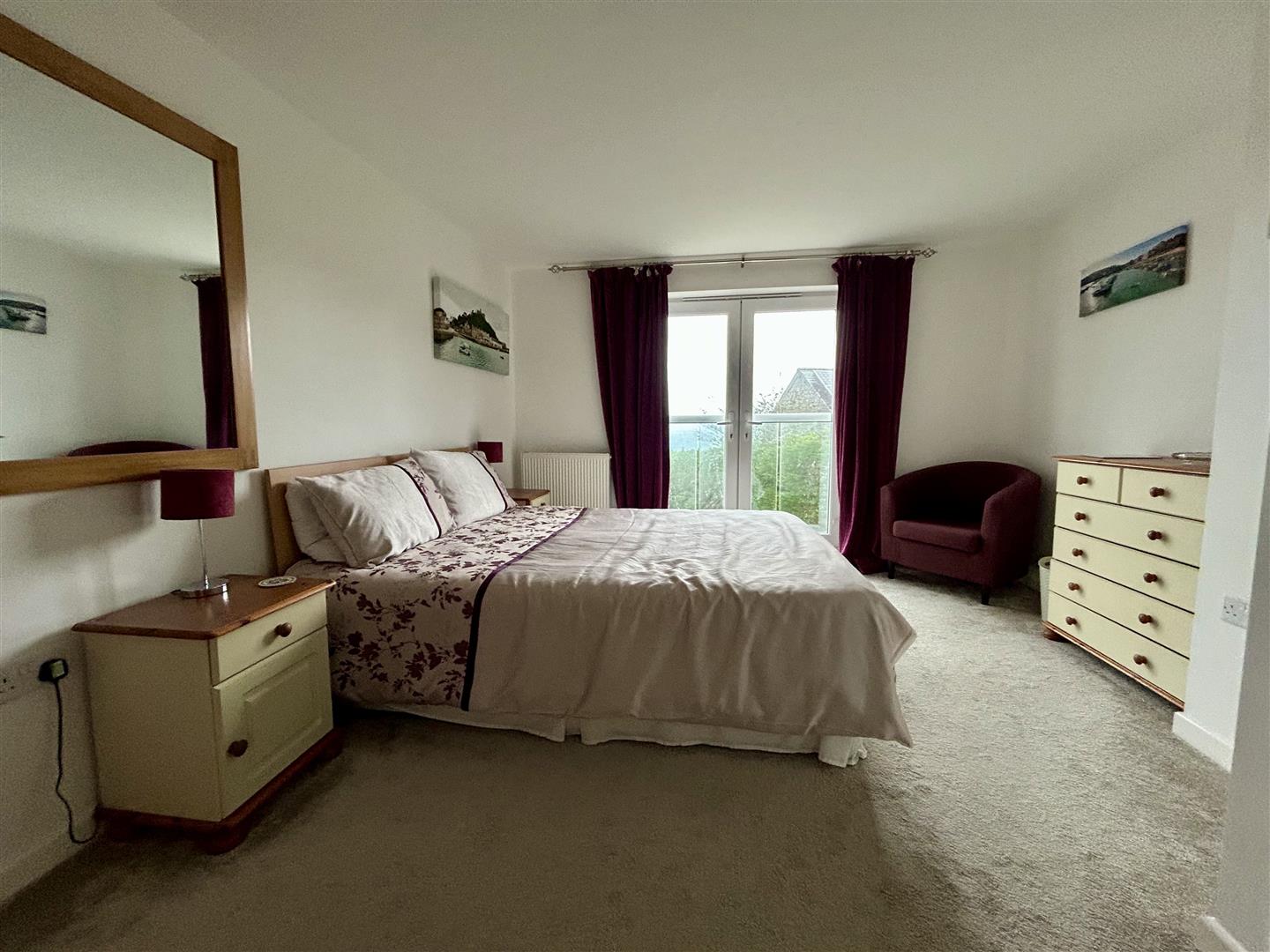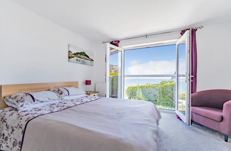 Master Bedroom - 5.06m x 3.59m (16'7" x 11'9") - A super space with glazed doors that lead to the Juliet balcony where a fantastic coastal and marine outlook can be enjoyed. There are a number of built-in wardrobes and a door to -