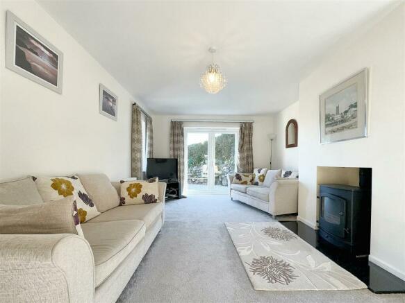 Lounge - 6.10m x 3.59m (20'0" x 11'9") - A triple aspect room with views to the garden seating area and across the bay towards Lowland Point. There is an impressive wood burner set on a polished stone hearth and a feature pendant light.