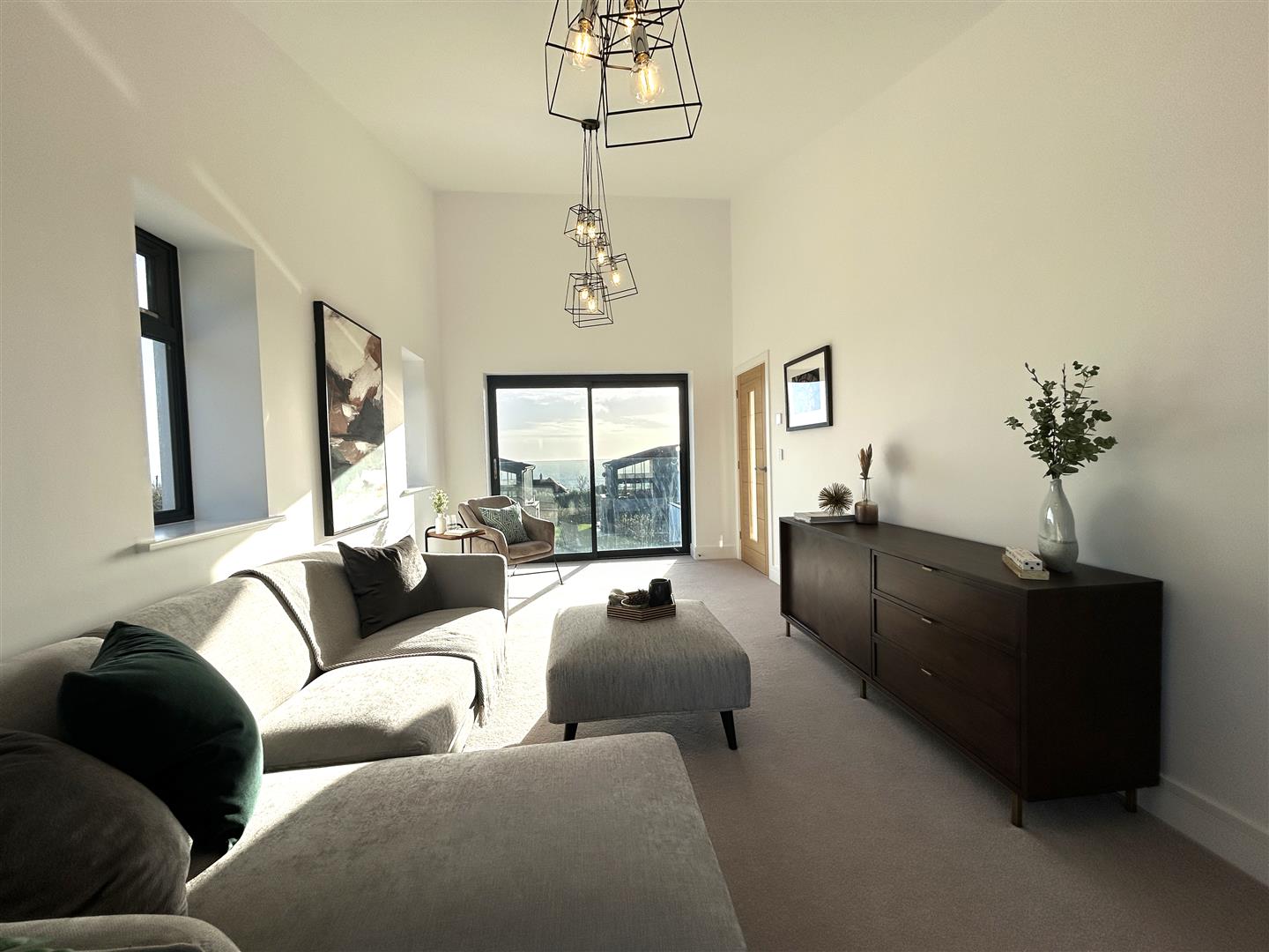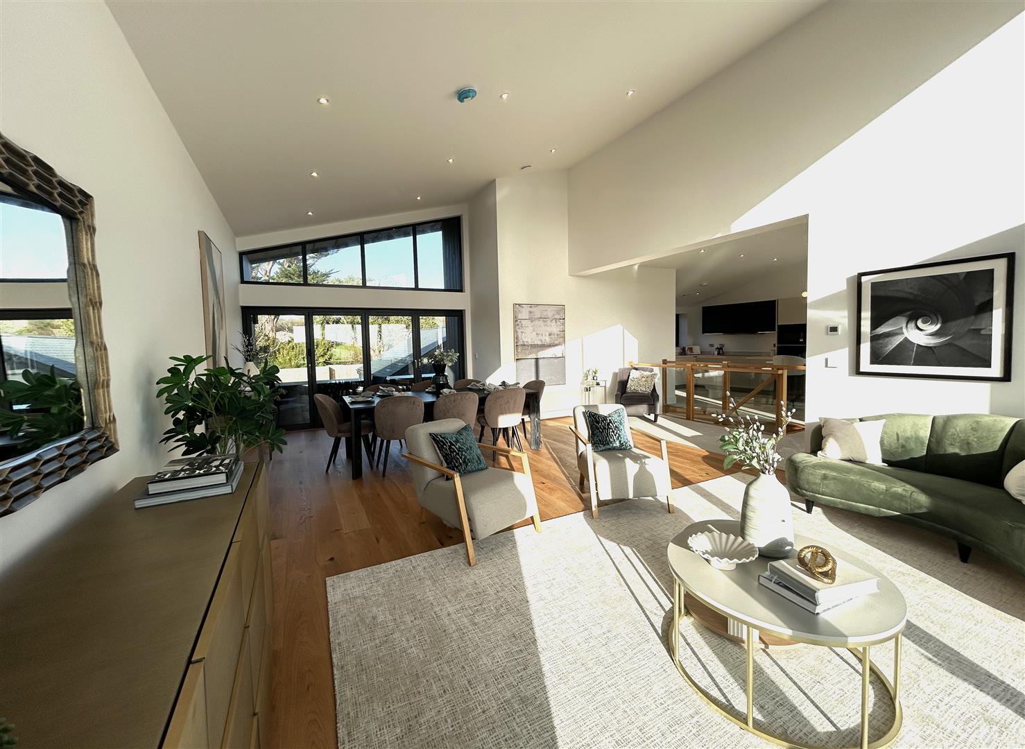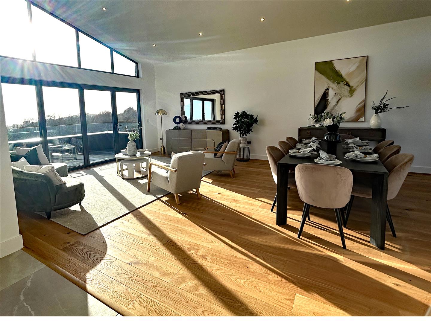 Lounge Kitchen/Diner - 11.05m x 8.08m (narrowing to 3.89m) (36'3" x 26'6" - A fabulous open plan space with vaulted ceiling, bi-fold doors to the front and rear, which open onto balconies. The front balcony, in particular takes full advantage of the views across other properties and out to sea.