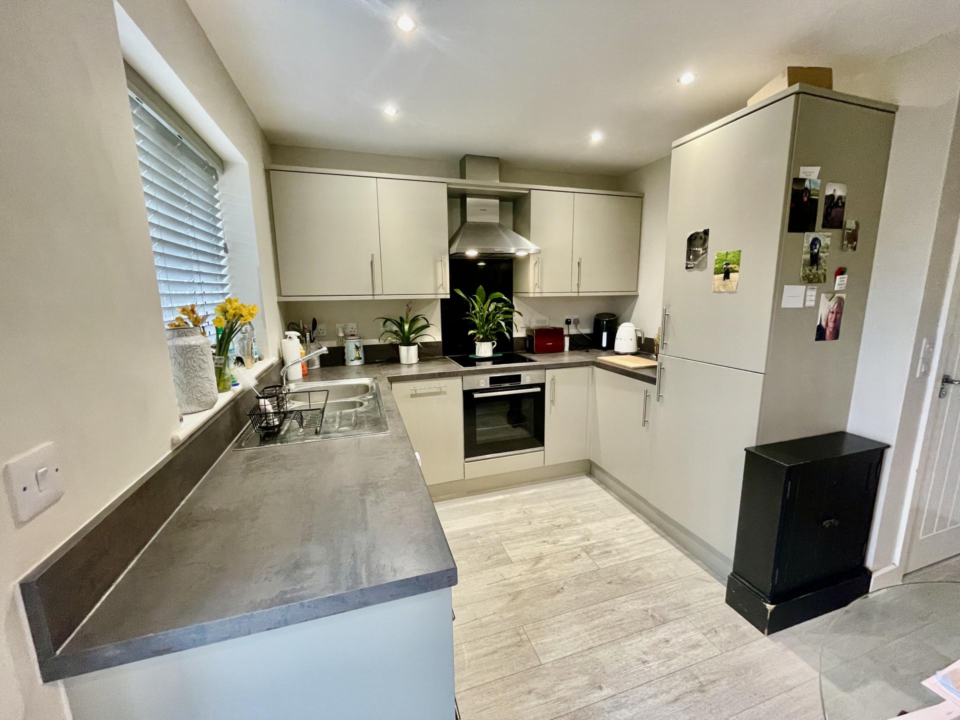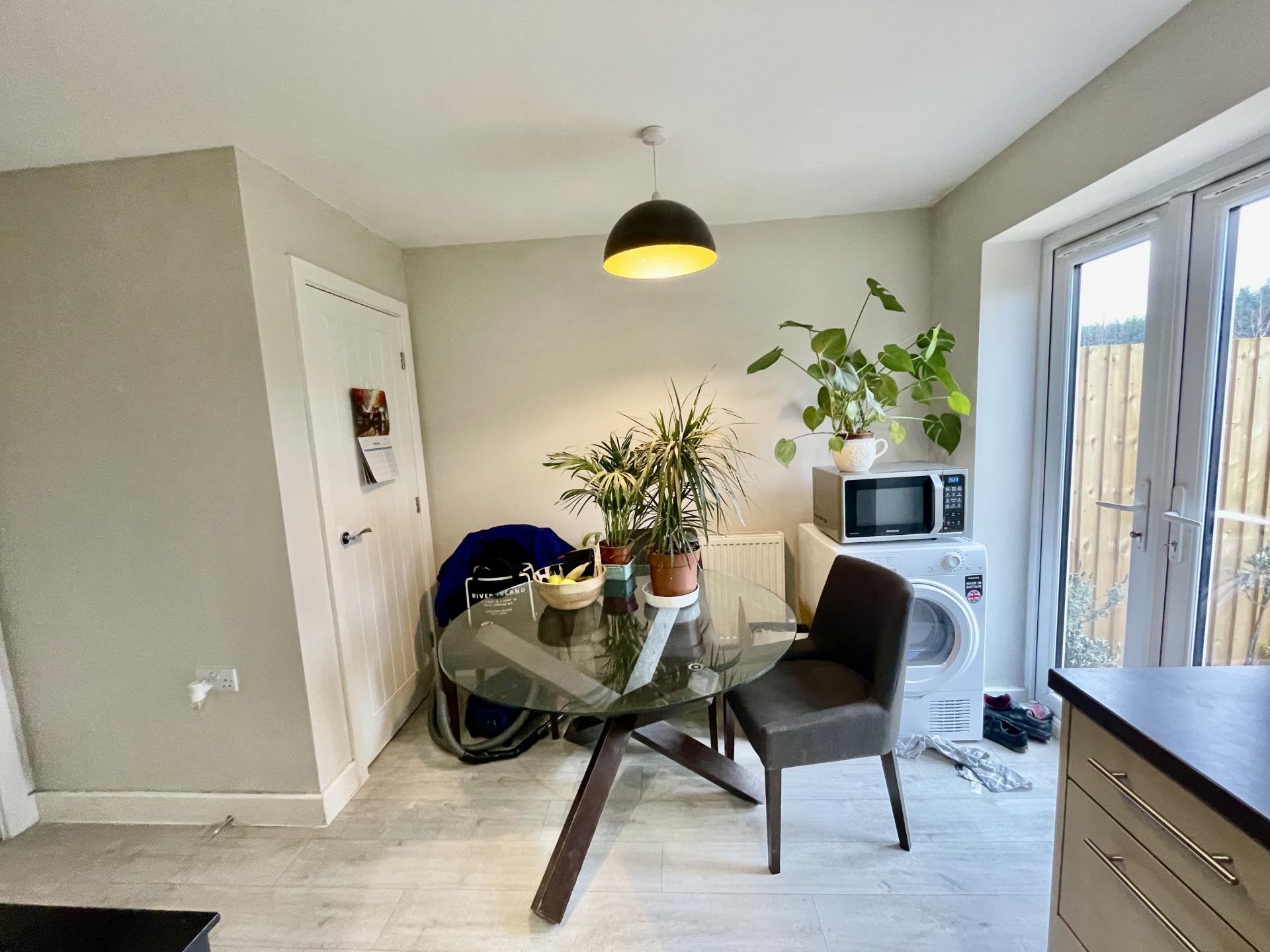 KITCHEN DINER 12' 10" x 13' 5" (3.93m x 4.10m) UPVC double glazed French doors to the rear elevation, UPVC double glazed window to the rear elevation, skimmed ceiling, inset LED lighting, plank style laminate flooring, centre light point to the Dining area, radiator, smoke detector, fitted with a wide range of base, eye level and drawer units, work surfaces over, splashbacks, inset one and a quarter bowl sink with mixer tap, plumbing and space for washing machine, integrated Bosch ceramic hob, integrated stainless steel fan assisted electric oven, Bosch stainless steel canopy extractor hood over, integrated Bosch fridge freezer and dishwasher. Door to understairs storage cupboard, door to: