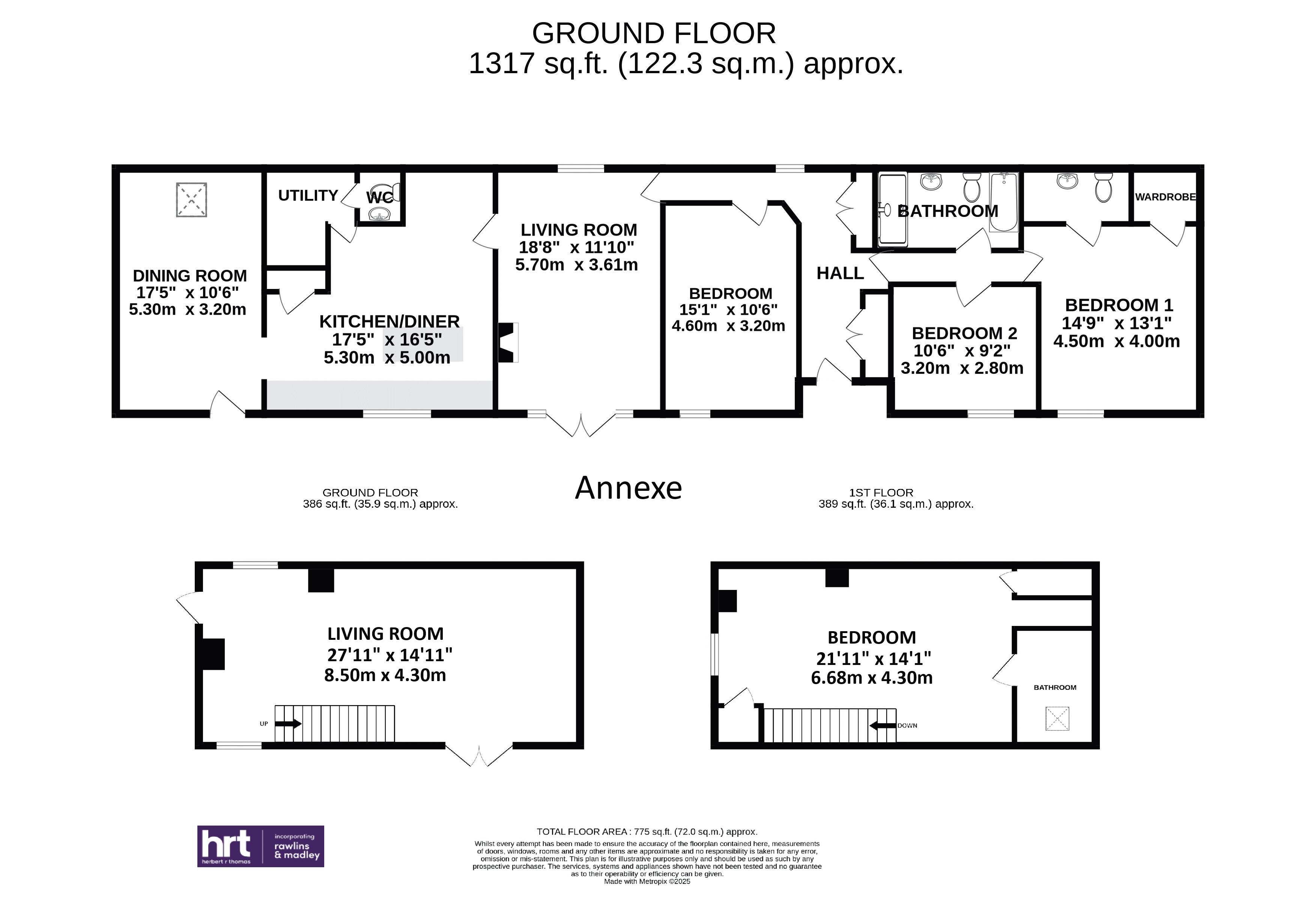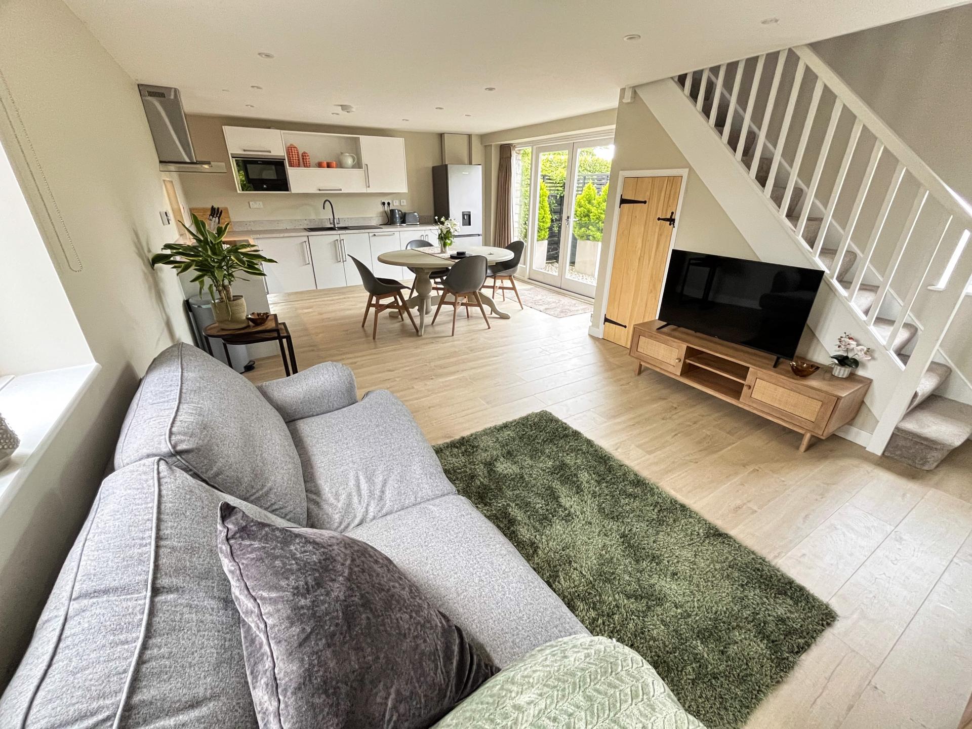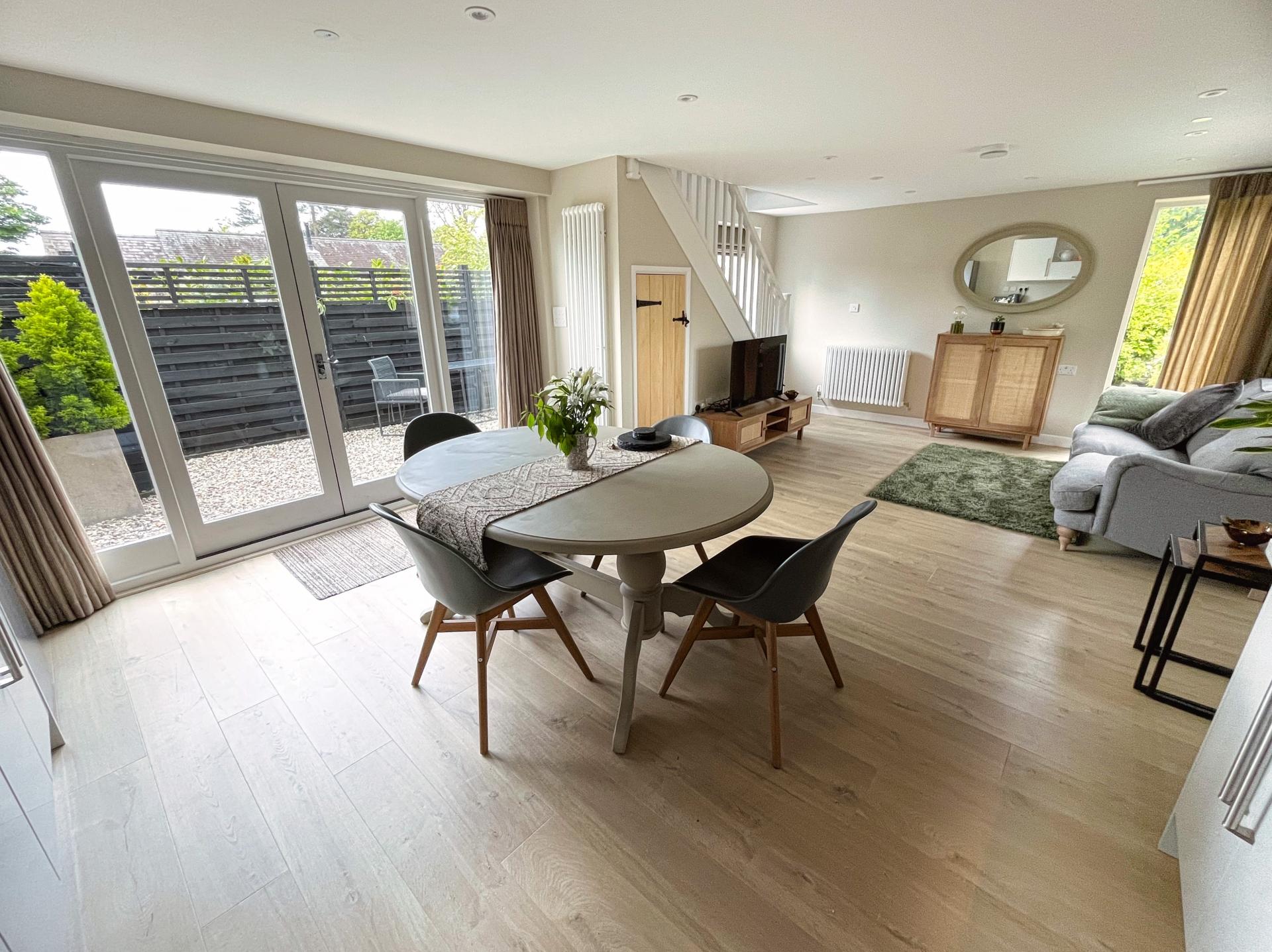 - Detached guest cottage with open plan sitting and kitchen dining room, double bedroom and en-suite shower room.