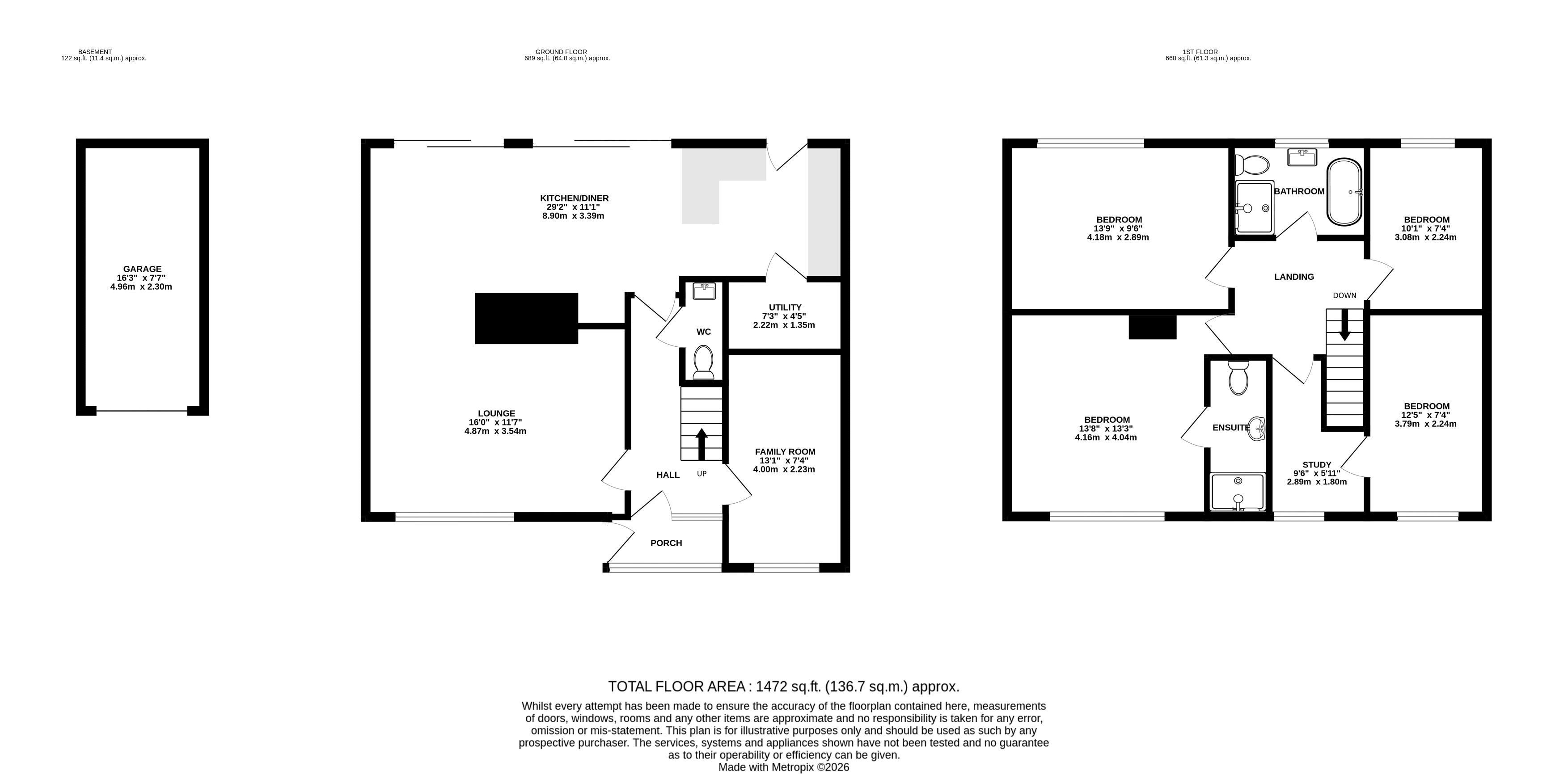 - Four bedrooms, principal bathroom, and ensuite shower room.