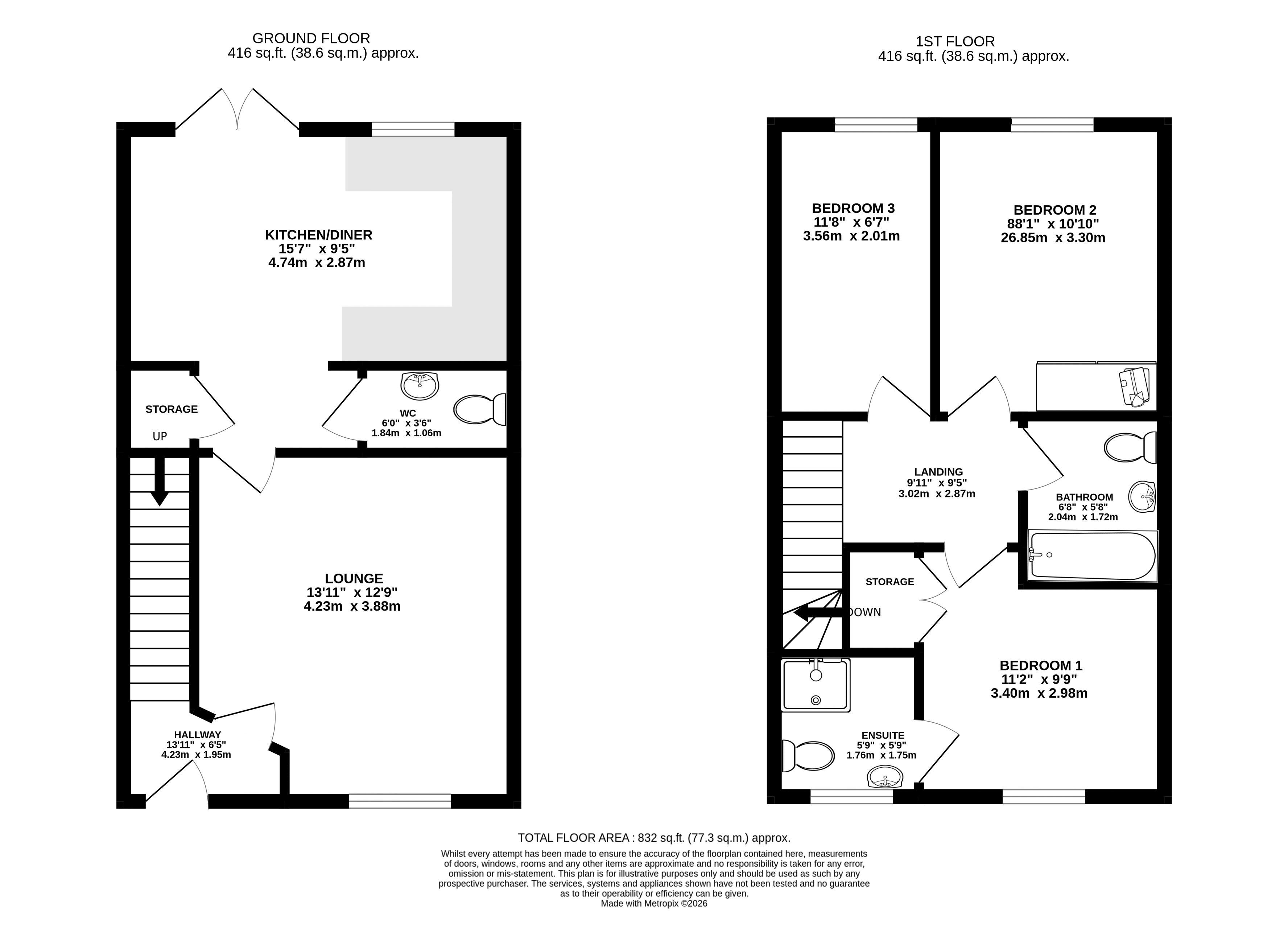 - First Floor – Three beautifully decorated bedrooms with en-suite shower room to bedroom one and an additional family bathroom.