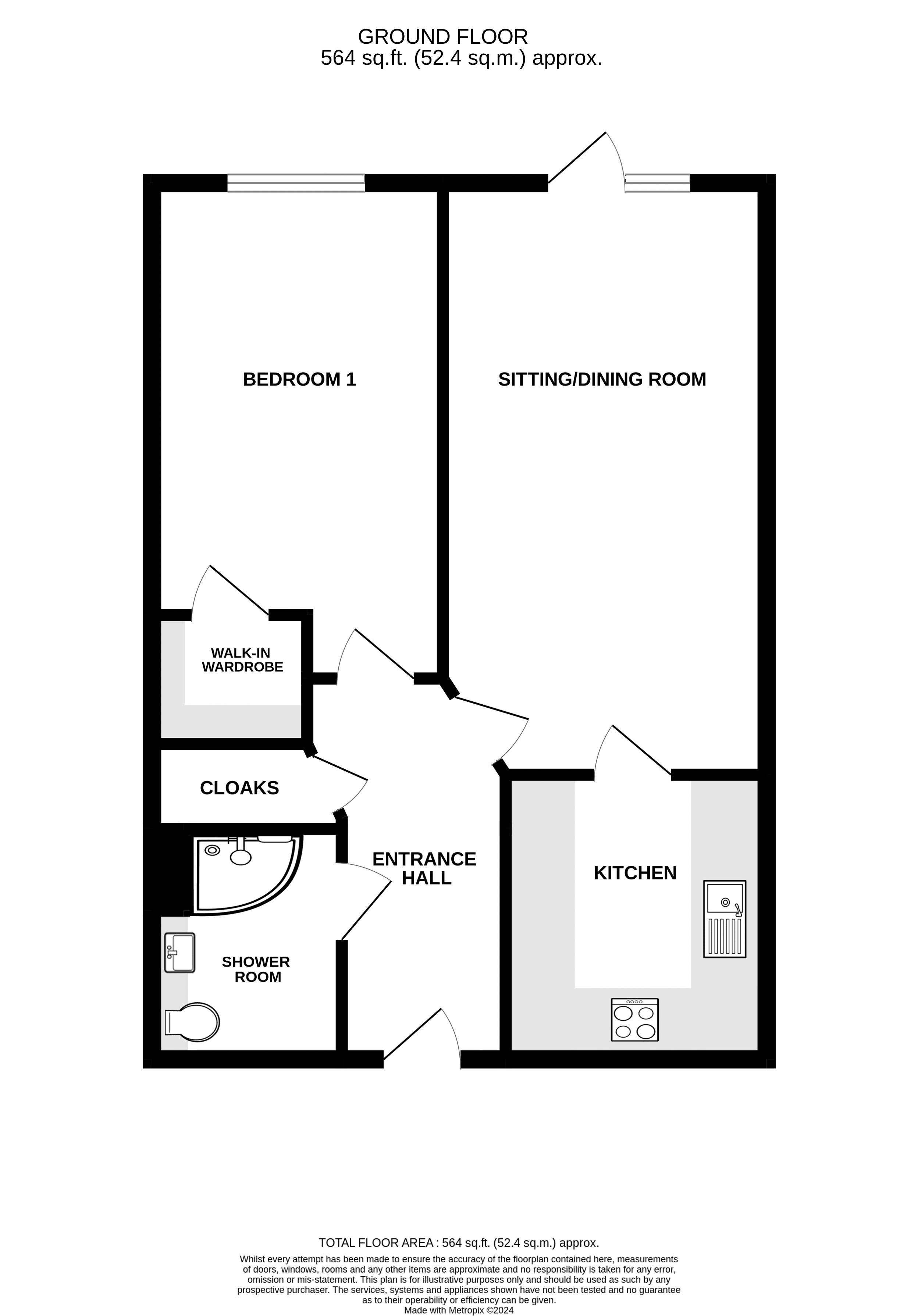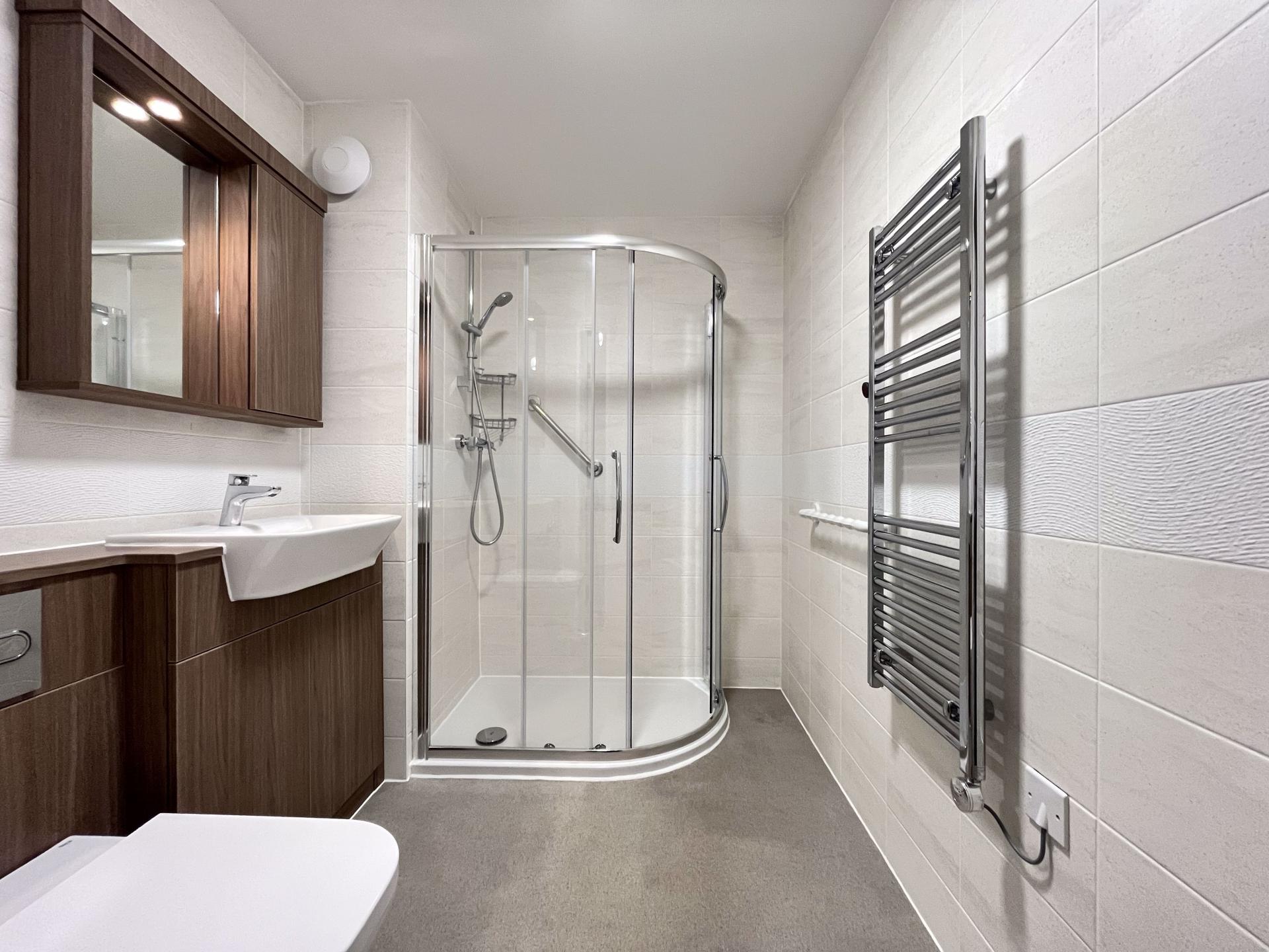 - Accommodation comprises an entrance hall with cloaks cupboard off, double bedroom with walk-in wardrobe, living/dining room, fully integrated kitchen and shower room