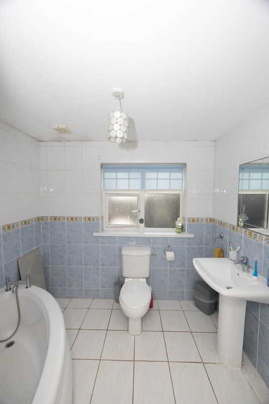 The family bathroom is finished to an impressive standard and includes a corner bath, with full tiling from floor to ceiling, offering a luxurious, hotel-style feel.