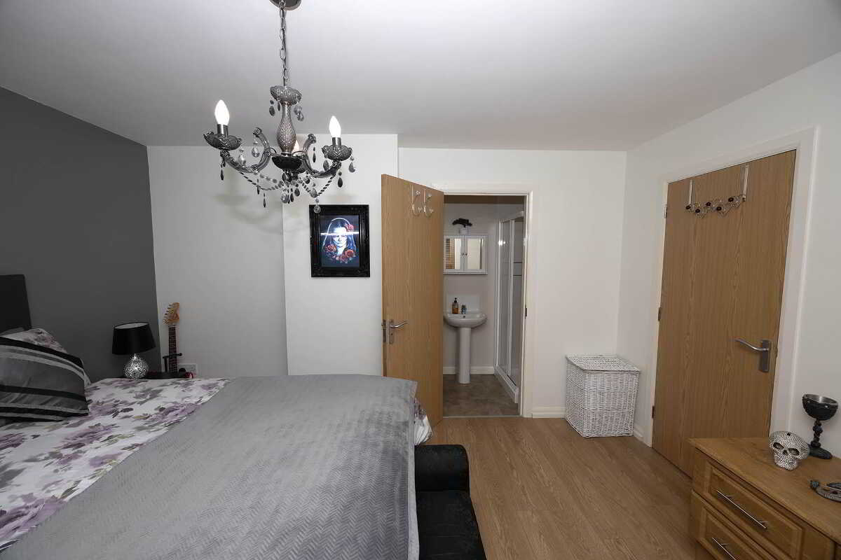 Spacious Master Bedroom with en-suite, extending over alleyway a rare bonus in townhouses
