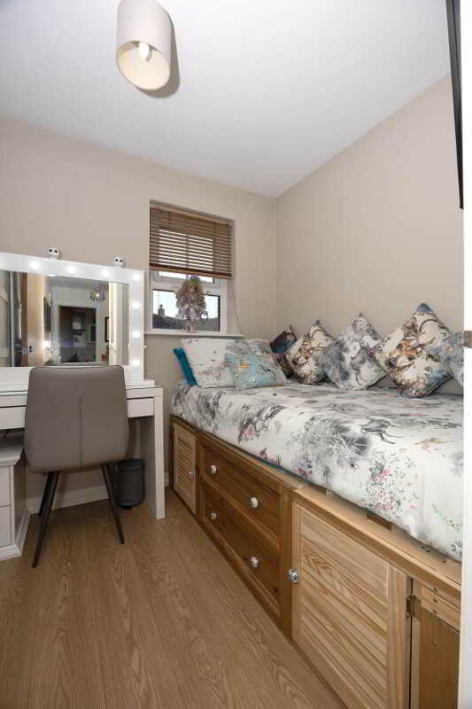 Step outside to a fully paved, low-maintenance back garden perfect for relaxing or entertaining. The standout feature? Your garden backs onto the iconic brick wall of Brownlow House Castle, giving a touch of historic charm to your everyday view.