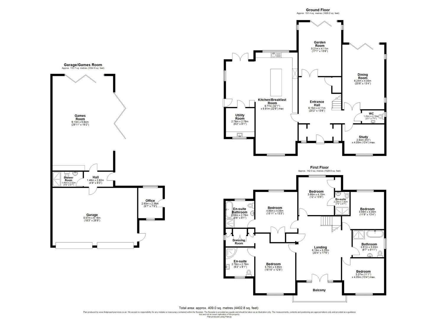 - Five bedrooms, three with en-suites; family bathroom, and principle includes a dressing area