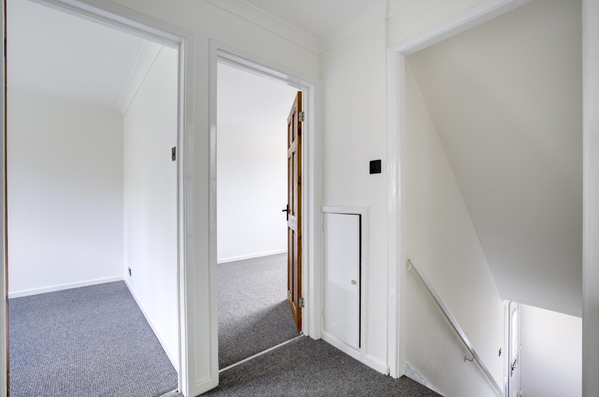 Stairs to first floor landing, cloaks cupboard.
