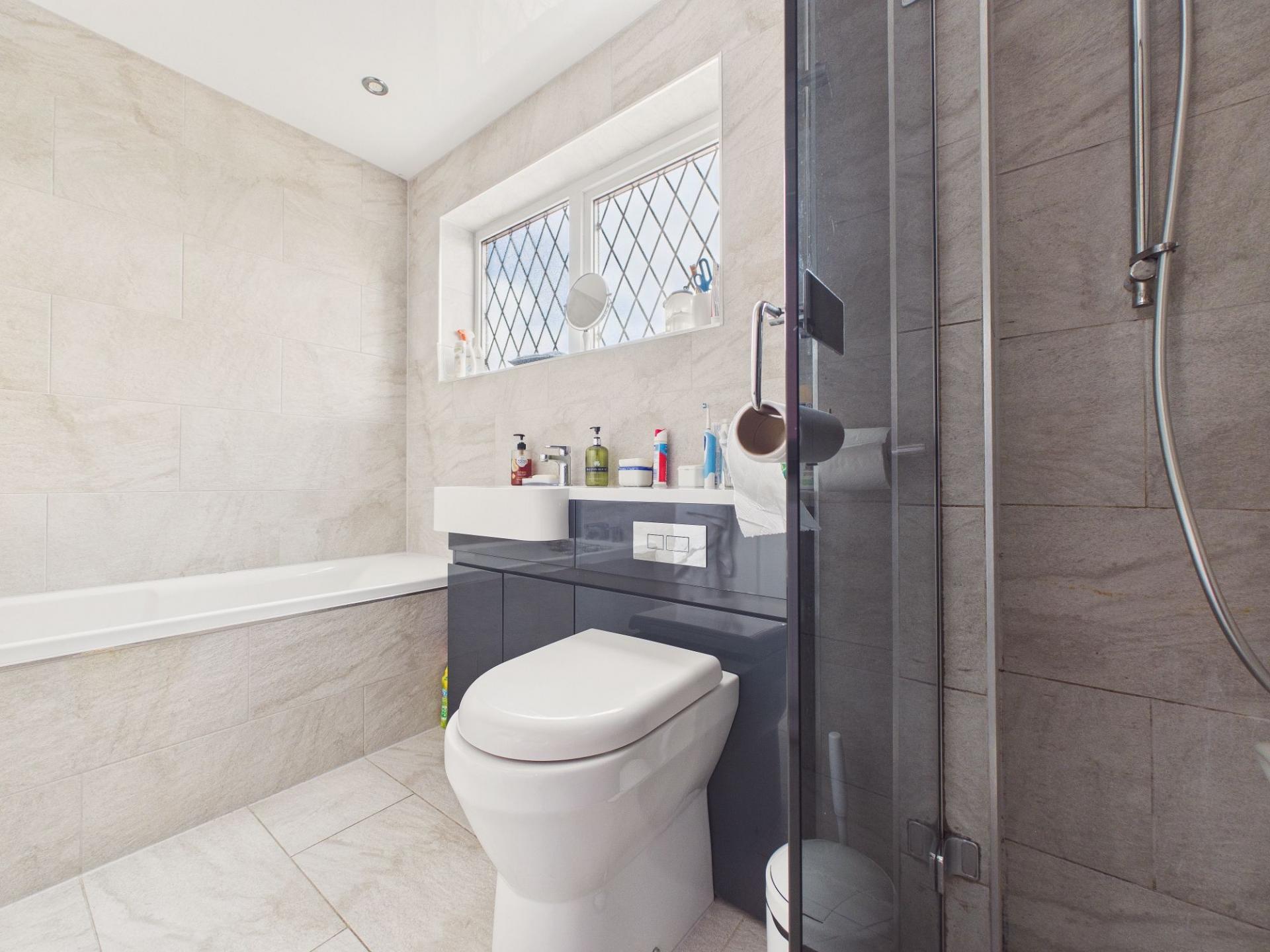 To the first floor, the property continues to impress with four well-proportioned bedrooms. Three of the bedrooms benefit from fitted wardrobes, providing excellent built-in storage solutions and enhancing the sense of space and practicality. The beautifully appointed family bathroom has been thoughtfully designed and features a bath, WC with concealed cistern, a hand wash basin set within a stylish vanity storage unit, and a separate walk-in shower with mains-fed shower over, offering both comfort and convenience for the whole household.