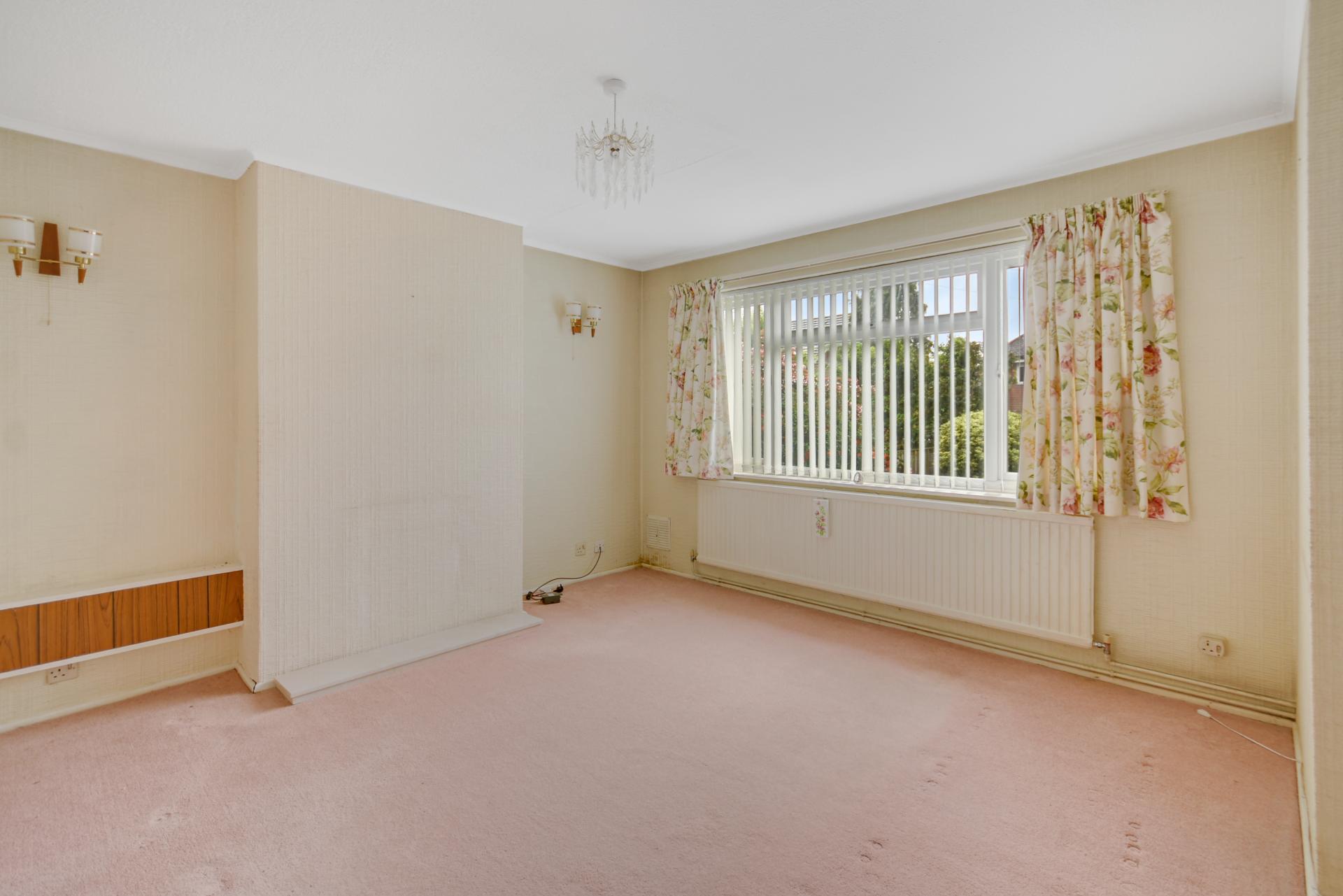 Sitting Room: Double glazed window with Vertical Blinds to the front. Wall light points. Bi-folding door to: