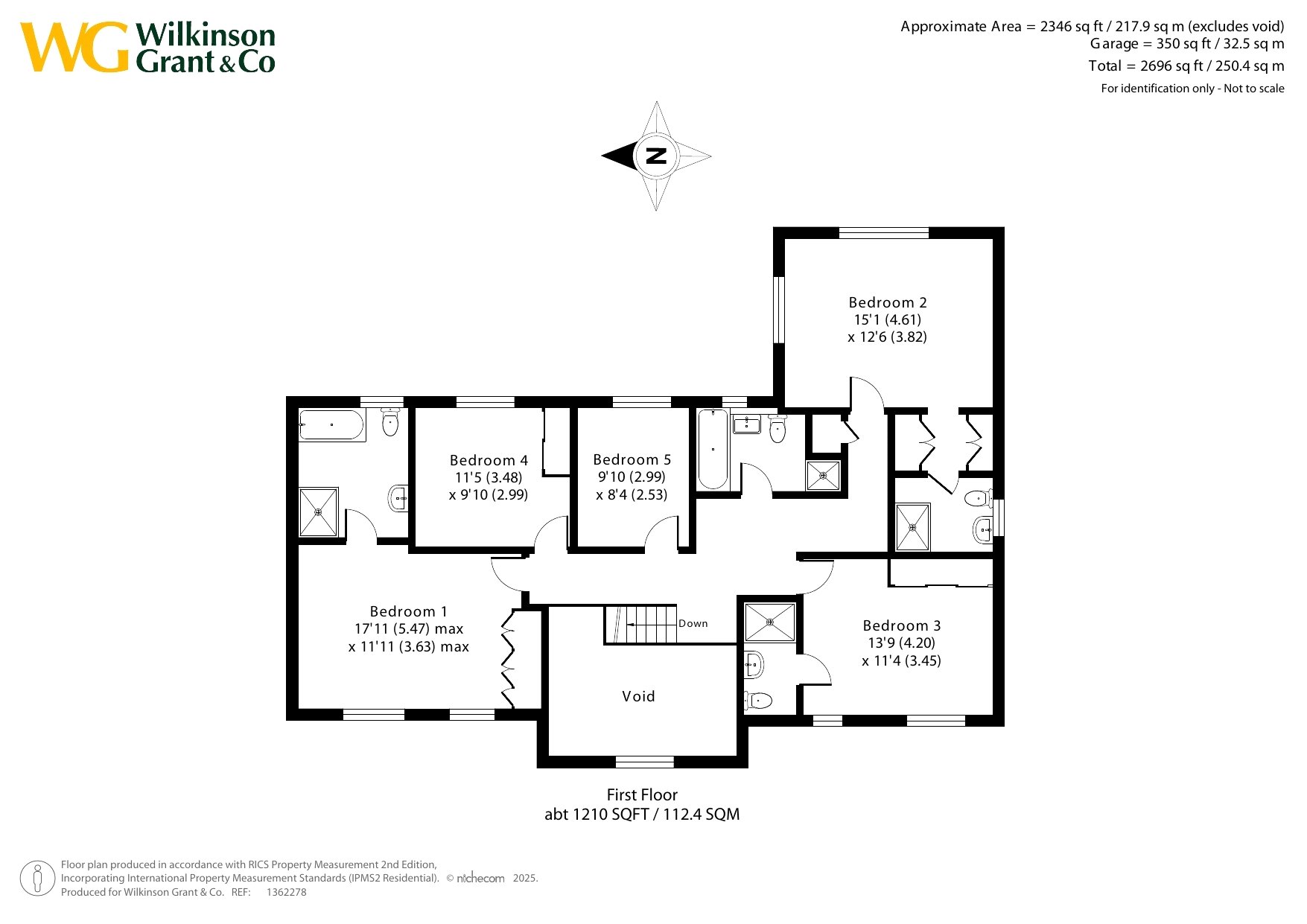Upstairs, the galleried landing gives access to five well-proportioned bedrooms, each designed for comfort. The principal suite features twin front-facing windows, fitted wardrobes, and a luxurious en suite with bath, large shower, and heated towel rail. Bedroom two enjoys dual-aspect windows with views towards the surrounding hills and a stylish en suite, while bedroom three also benefits from an en suite. Two further bedrooms and the family bathroom complete the upper level, offering flexibility for a growing family or guest accommodation.