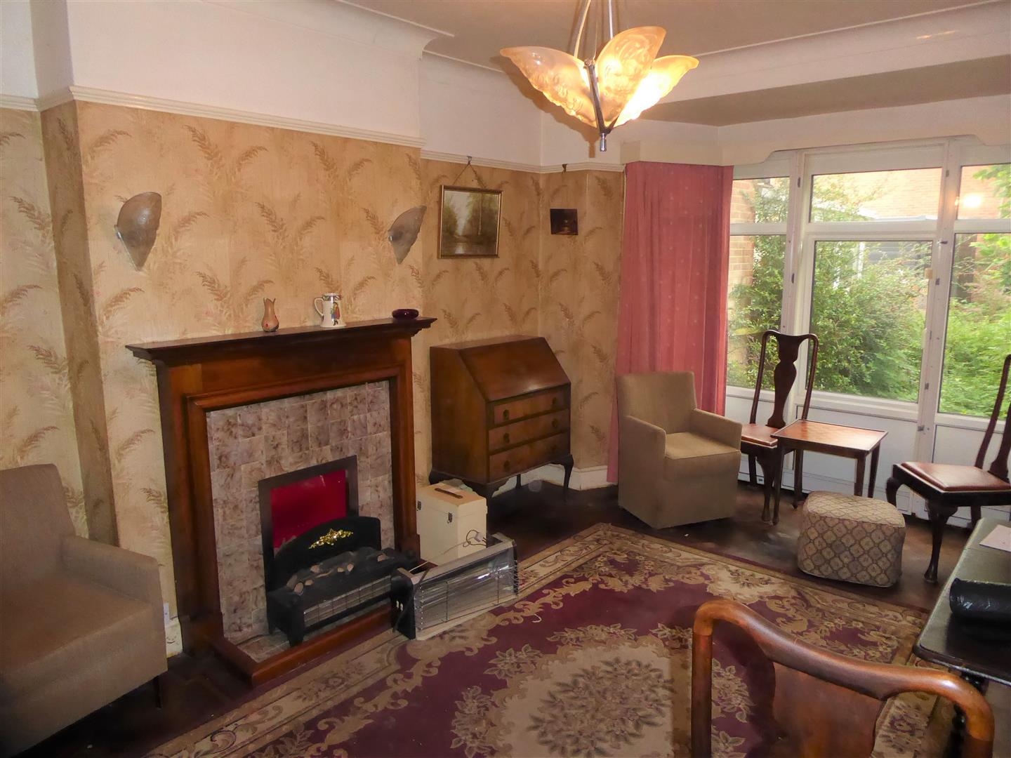 Reception Two - Double glazed window and door to garden, feature tiled fireplace, power point, radiator, parque flooring, picture rail.