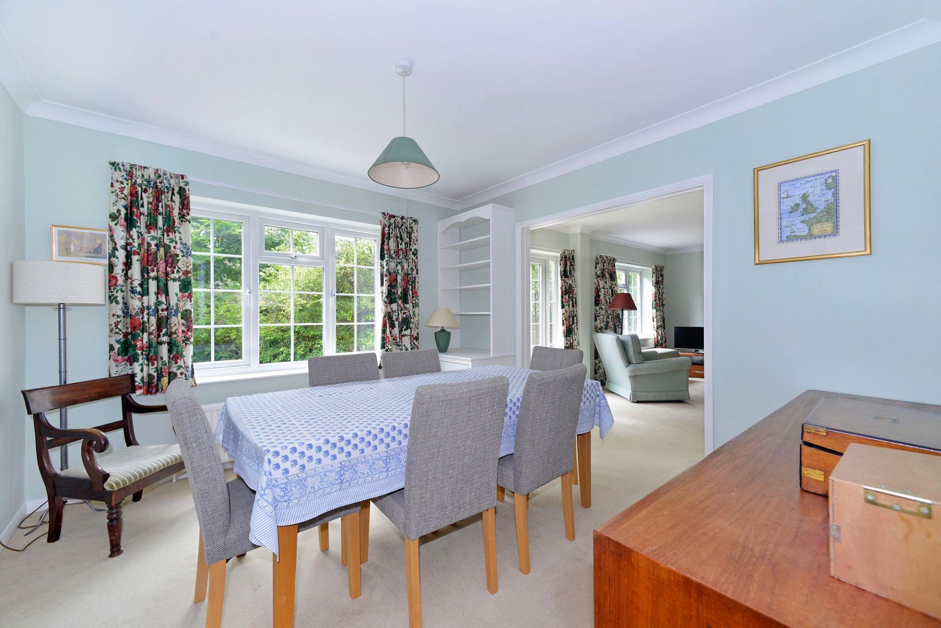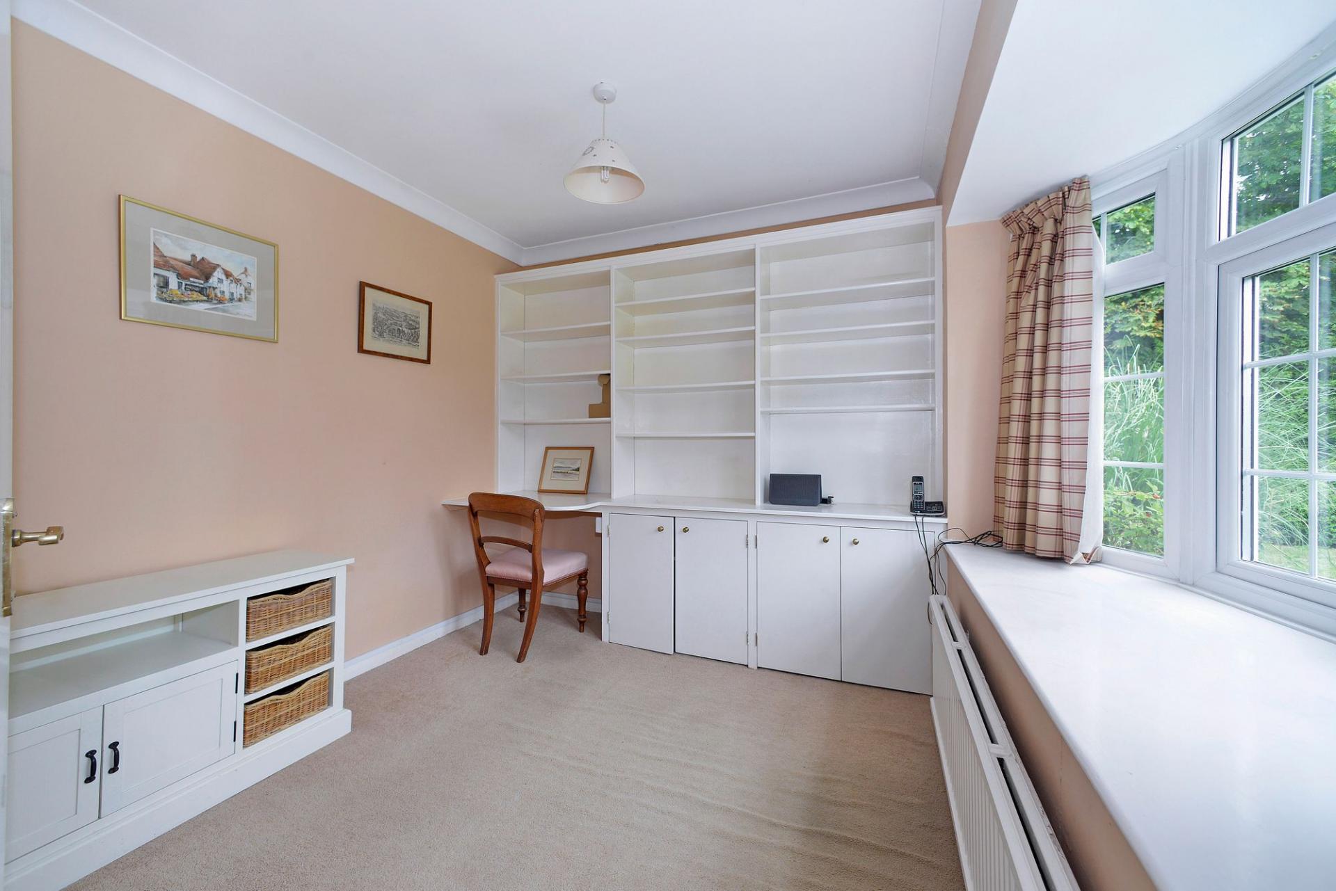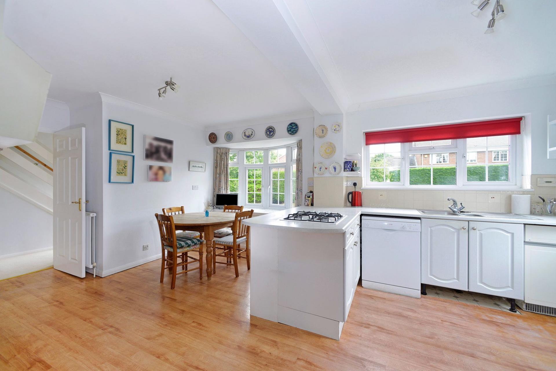 NO ONWARD CHAIN - A spacious four bedroomed detached family home situated in a sought after residential road, within level walking distance of Cranleigh High Street. The property has great potential for further improvement/possible extensions subject to the usual planning consents. The bright and spacious accommodation is arranged over two floors consisting of entrance hallway with access to downstairs cloakroom. There is a study with bay window to the front and a generous sized sitting room to the rear with patio doors onto the garden. Continuing through to the dining room which has a fitted unit there is a door to the spacious kitchen/breakfast room. Moving upstairs there are four bedroom, three of which are double bedrooms. All feature fitted storage whilst Bedroom One and Bedroom Two have access to a Jack and Jill shower room. The family bathroom and an airing cupboard completes the accommodation. There is a large front garden and driveway having space for several cars leading to the garage which inside has a utility area with with plumbing for washing machine and sink unit.. The rear garden has well established hedge borders and is mainly laid to lawn. There is a sunny patio and area of garden to the side with apple trees leading back round to the front. We would highly recommend an early visit to fully appreciate.
