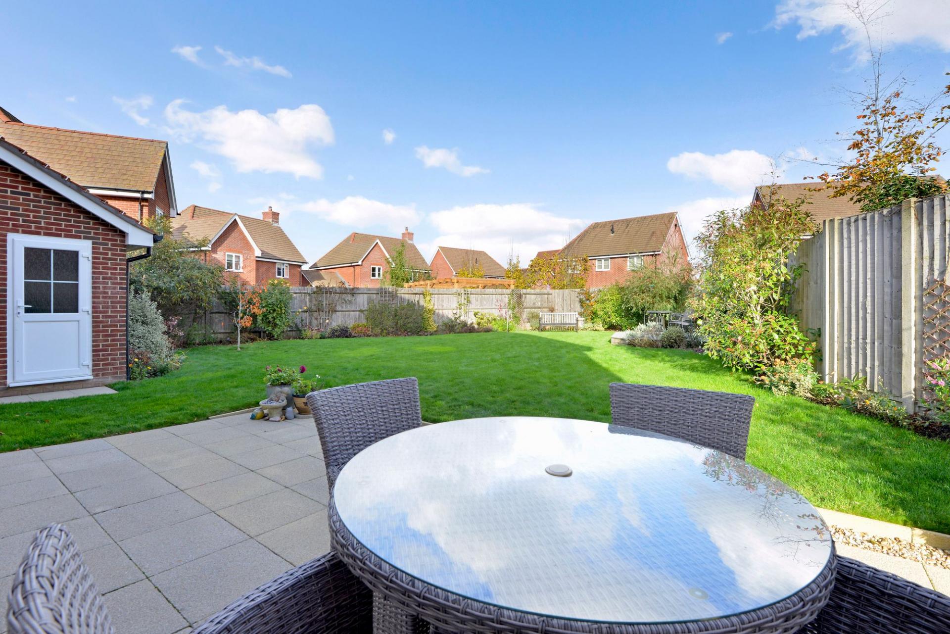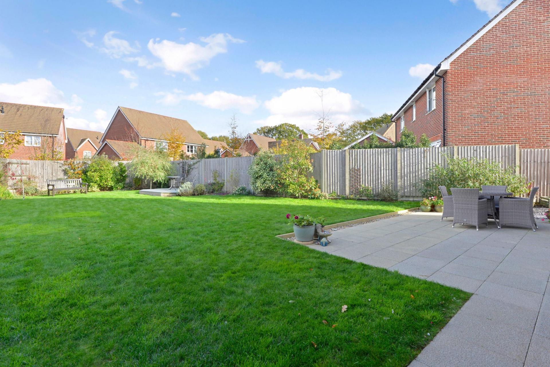 The rear garden is well-sized, ideal for children, pets, or summer gatherings. A detached double garage and wide driveway offer ample parking and storage, while the surrounding area is known for its friendly community feel, excellent schools, and easy access to the Downs Link bridleway providing lovely countryside walks and pursuits or access to the villages local amenities.