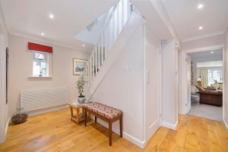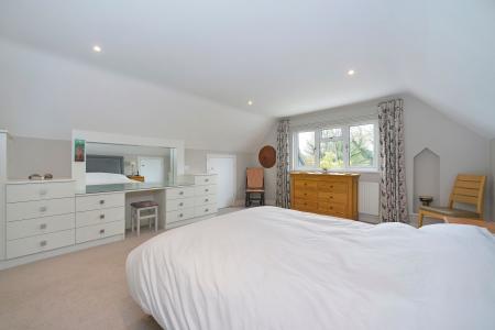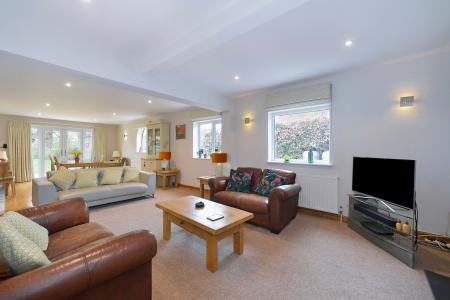 A beautifully presented chalet style property situated on the edge of the village on a good size garden plot. The property offers a most adaptable arrangement of accommodation having a welcoming reception hall with modern fitted ground floor shower room, double bedroom, study/bedroom four. The accommodation leads into a most impressive 35ft sitting room which is double aspect having attractive open fireplace with wood burning stove and double doors to the garden. Off the sitting room there is a comprehensively fitted double aspect kitchen/Breakfast room and a utility room. Stairs rise from the reception hall to a bright and spacious first floor landing having a comprehensive range of fitted wardrobe cupboards, double bedroom, modern fitted bathroom with underfloor heating and a principal bedroom overlooking the rear garden, also having a comprehensive range of fitted wardrobe cupboards and deep eaves storage cupboards. Outside there is a gravelled driveway providing plenty of off road parking leading to a garage which has a home gym/office to the rear. The rear garden is a delightful feature of the property being of good size enjoying a bright and sunny westerly aspect and has large expanses of lawn with established flower and shrub borders around. The property further benefits from PV solar panels with battery storage and EV car charger. We highly recommend a visit to this beautifully presented property to fully appreciate the accommodation and pretty garden on offer.