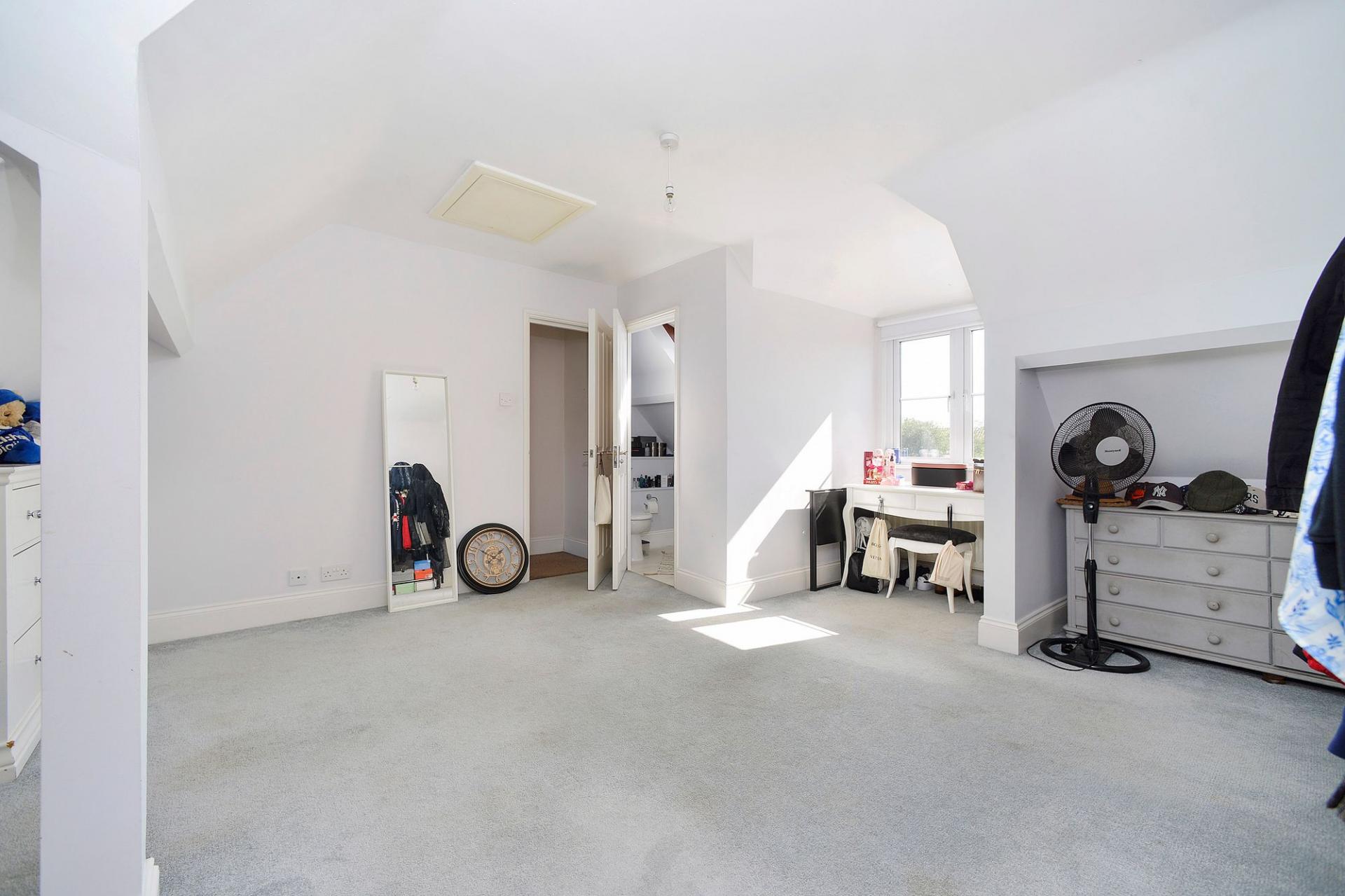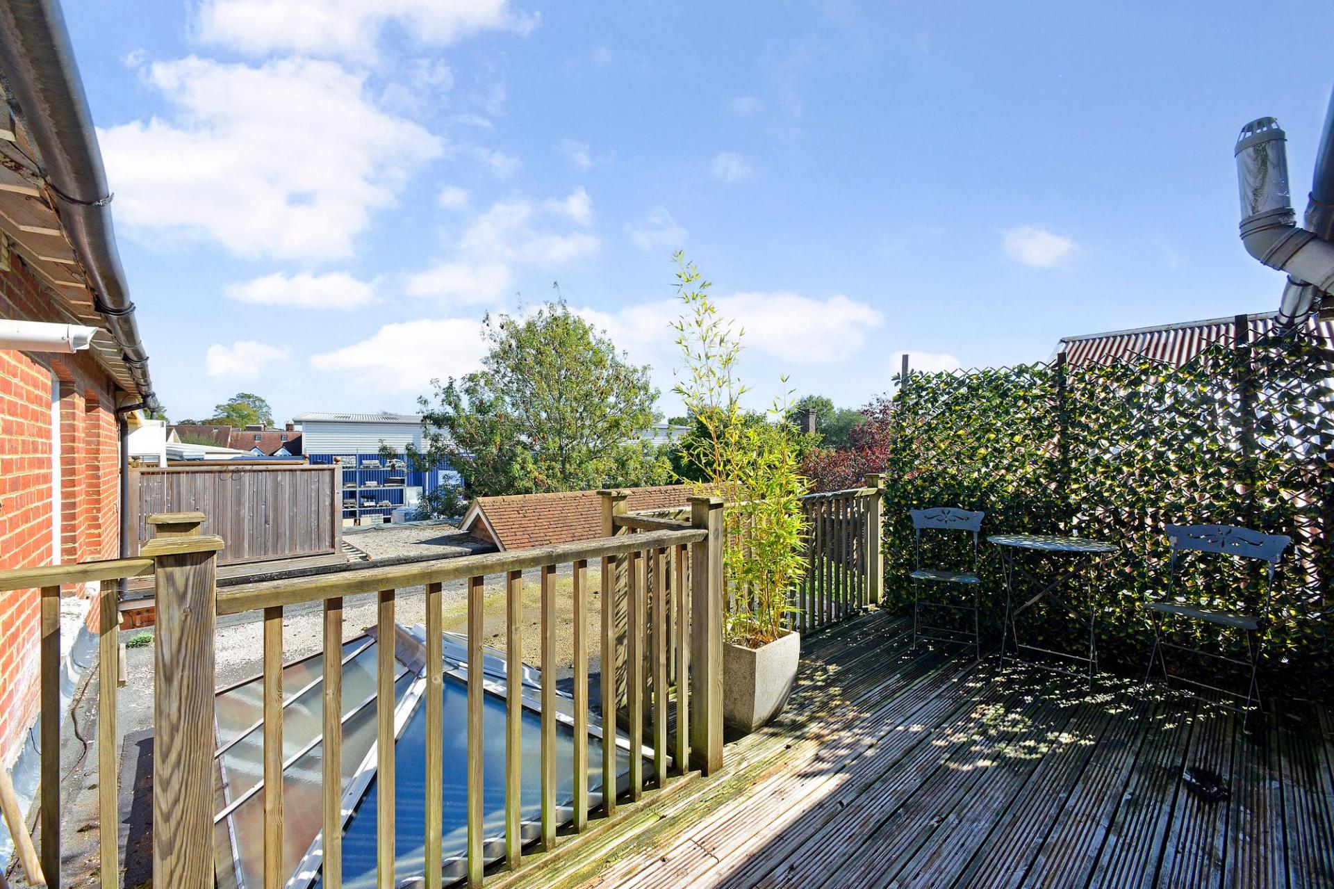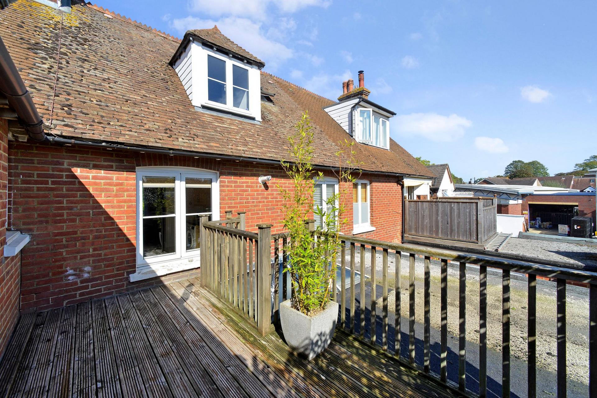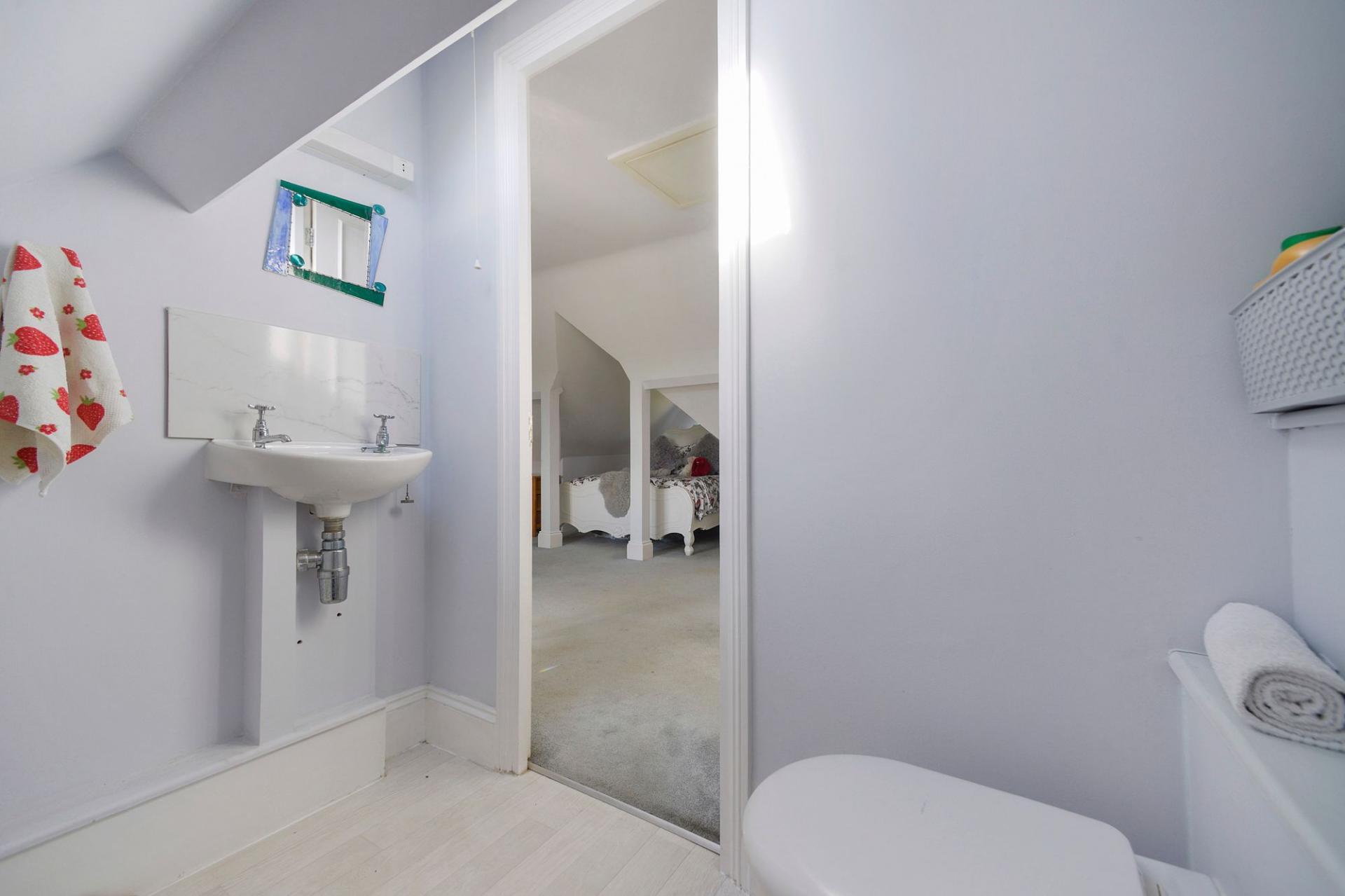 A surprisingly spacious one bedroom duplex apartment with accommodation arranged over two floors featuring a large living room opening into a kitchen/breakfast room and spacious bathroom with separate bath enclosure. From kitchen, there is occasional access via the window to a small roof terrace. Stairs rise to the top floor, where there is a large open plan double bedroom with ensuite cloakroom with WC and wash hand basin. The property benefits from gas fired heating and double glazed windows and is conveniently situated close to the village centre with lovely views to the front towards the cricket common. Outside, the property benefits from an allocated parking space. We highly recommend a visit to fully appreciate the accommodation on offer. The property is share of freehold.