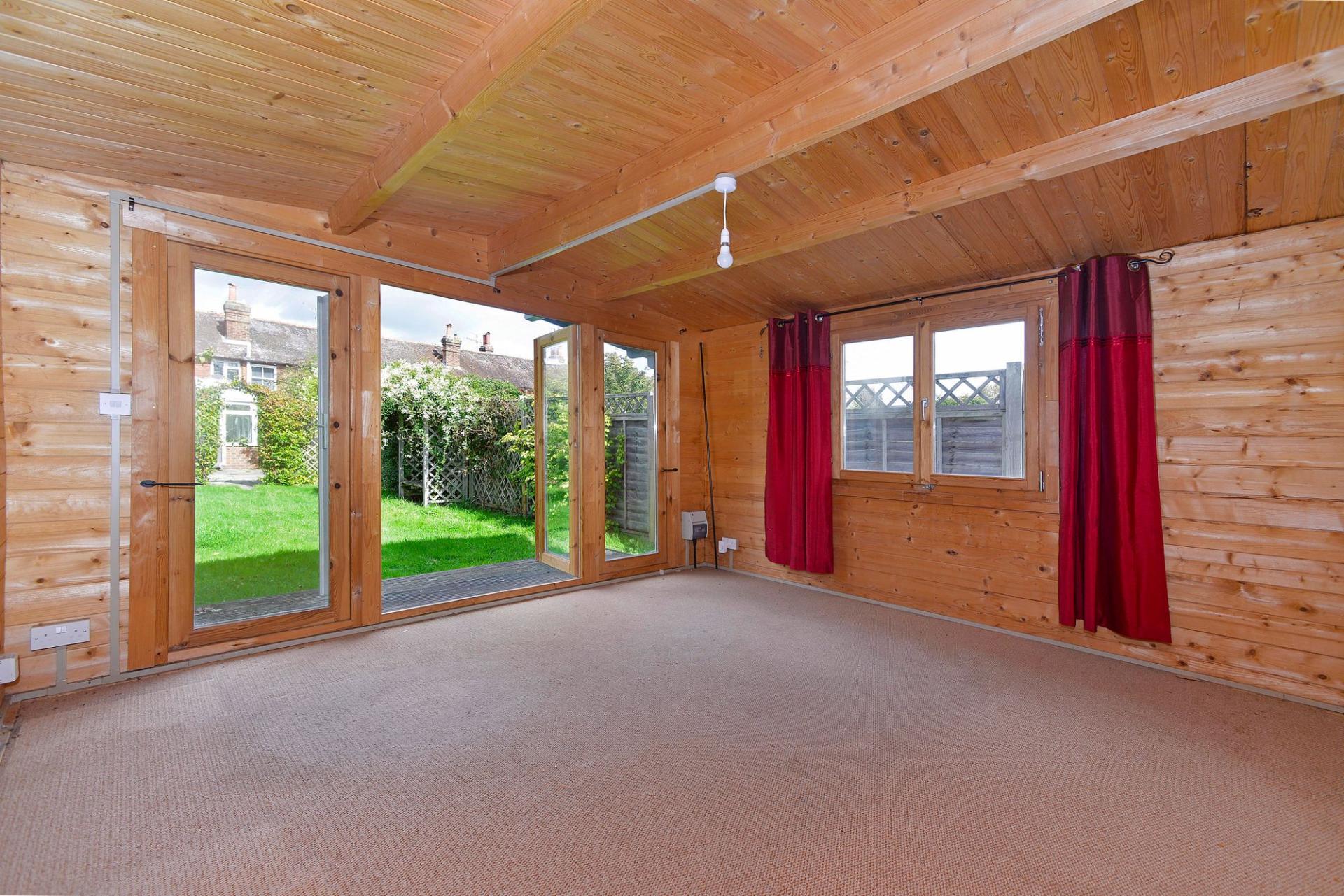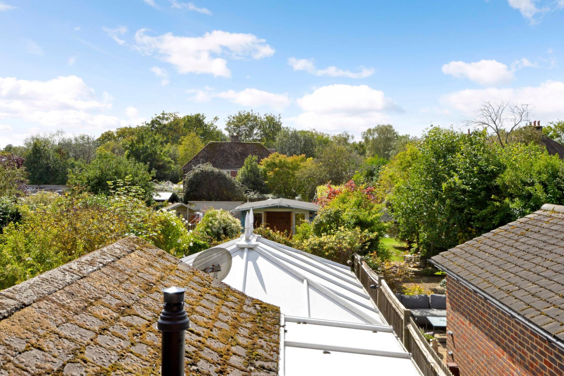 An attractive character three bedroom cottage, overlooking the common to the front and enjoying a large south west facing garden to the rear. The accommodation is arranged over two floors with sitting room having a fireplace, dining room with personal door to the garden, kitchen leading into conservatory to the rear and a bathroom completes the ground floor accommodation. Stairs rise to the first floor, where there are three good sized bedrooms. Outside, there is a small front garden with side access to the rear garden, which is a lovely feature of the property being of good size, having a paved patio stepping onto extensive lawns with flower and shrub borders around. There is a substantial summer house/office with power and light, a further area of garden with raised vegetable beds and a large timber garden store. Gate in rear boundary providing access to the Downs Link footpath.