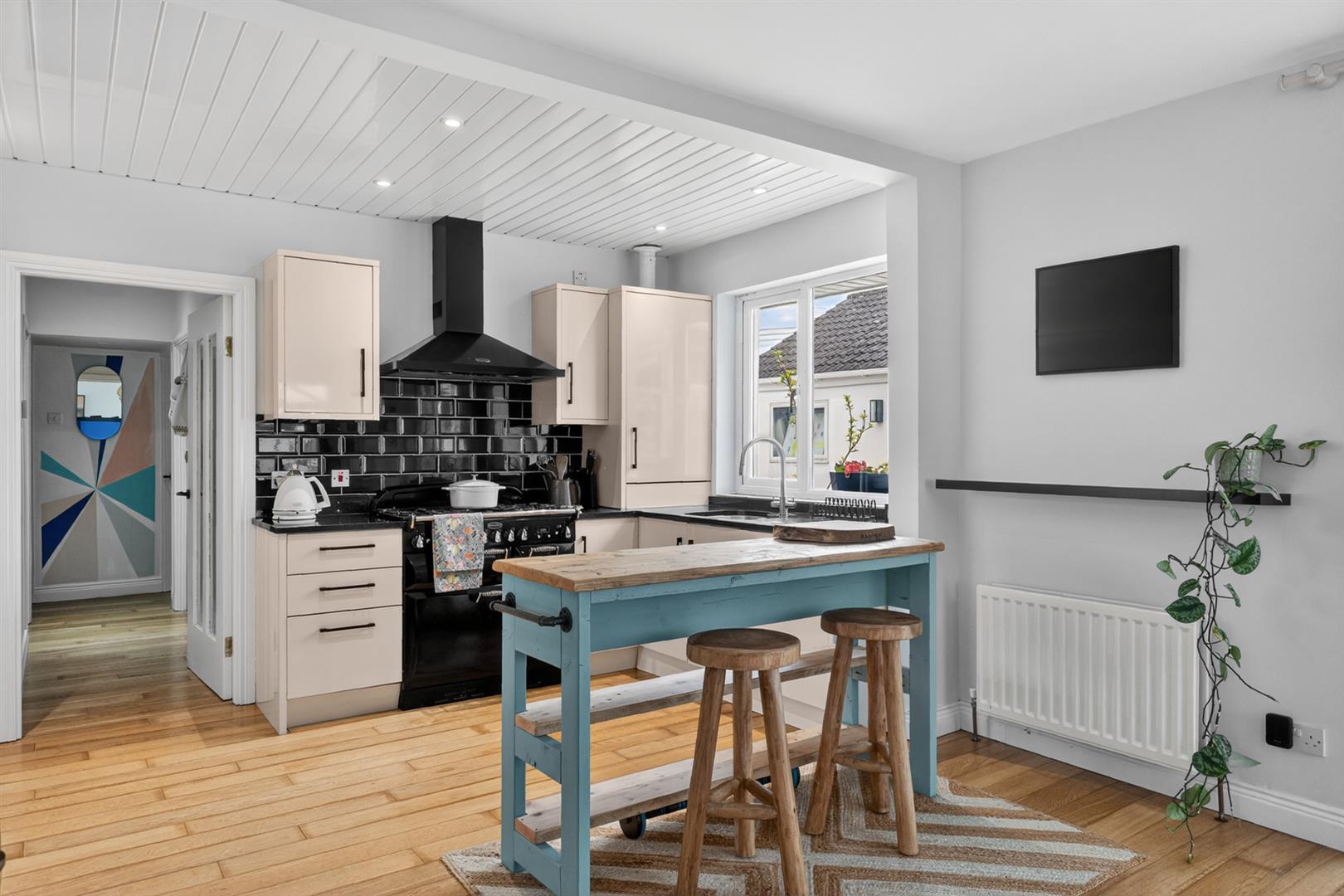 Kitchen/Living/Dining - 7.59m x 5.44m (24'11 x 17'10) - With outlook to front and side, feature hardwood floor, open to kitchen. Modern kitchen with range of high and low level units, space for range, Range Master extractor above, subway style black feature tiling, granite work surface, stainless steel sink and a half with etched in drainer, mixer tap , outlook to rear, integrated dishwasher, fridge and freezer, concealed gas fired boiler.
