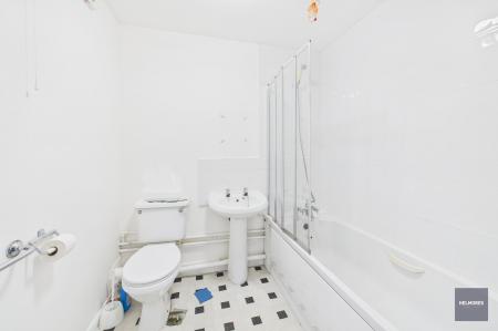 The flat itself includes an open plan living/kitchen/dining room which has an elevated area to sit and enjoy the lovely views over the park. There’s a large double bedroom with an array of fitted cupboards and wardrobes. The bathroom has a white suite bath with shower over, WC and sink. The property has uPVC double glazing and an electric heater in the hall.