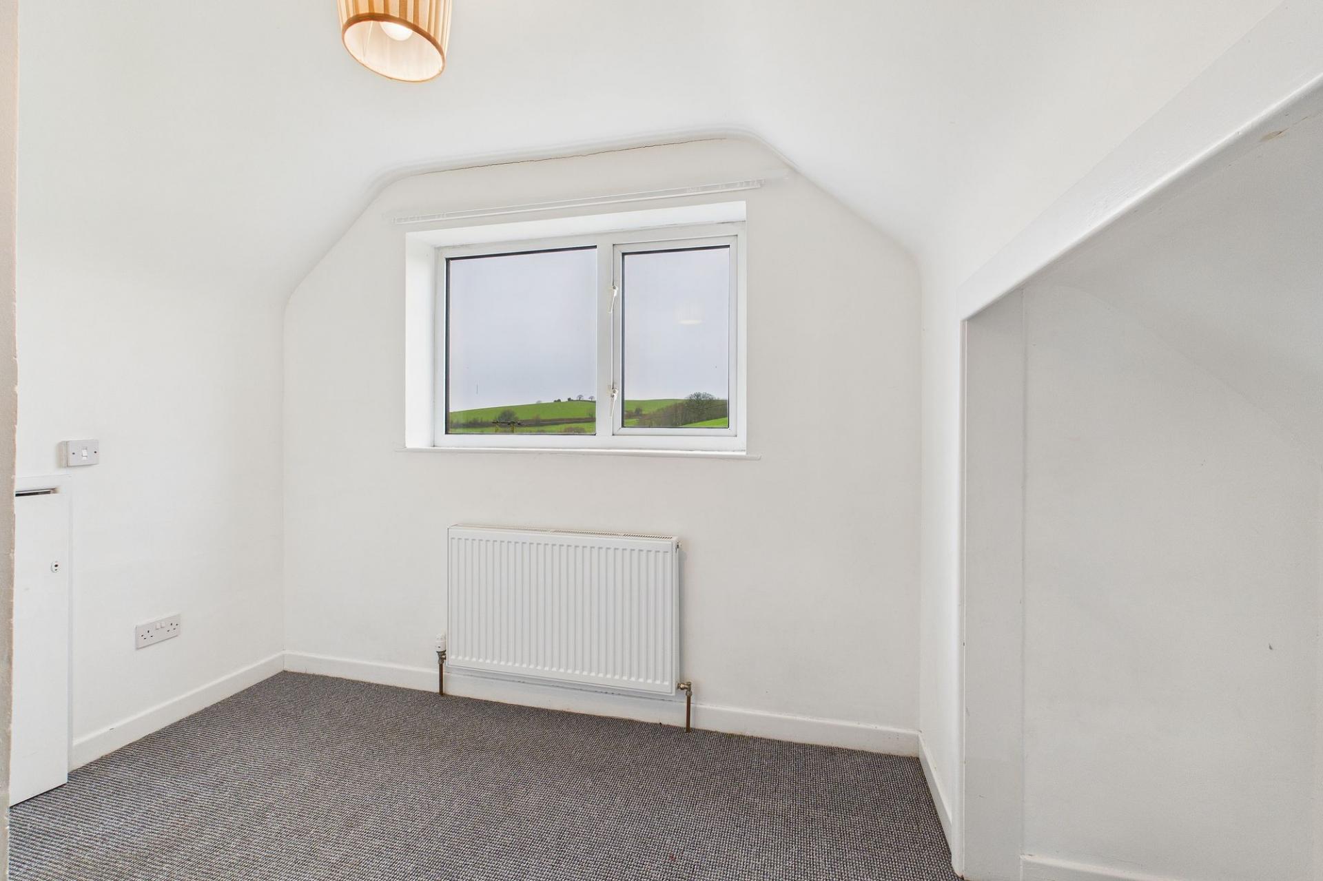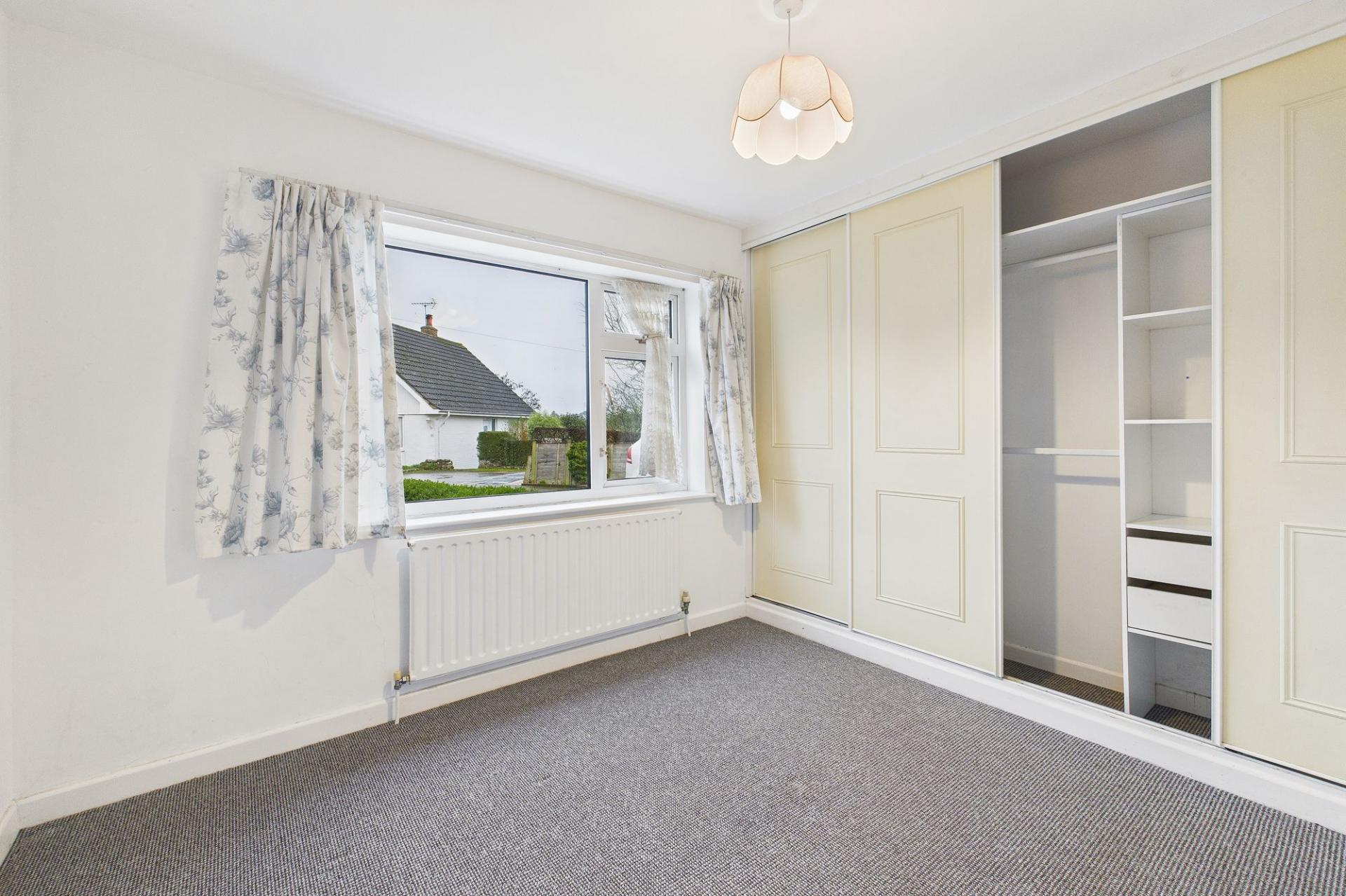 Located on the edge of the village with far reaching views over the adjoining countryside is Orchard Close, a small cul-de-sac of bungalows and chalet bungalows in a slightly elevated position to enhance the vista. This property is detached and can be found at the head of the cul-de-sac, tucked away at the end with gardens to the side and rear. Due to its position, it certainly benefits from the outlook over the fields and it feels very calm and green from the living room and kitchen windows. There’s uPVC double glazing, Calor central heating and a new kitchen has been installed in the last couple of years. The layout gives a living room (with those views), a kitchen/breakfast room and then two further bedrooms (or one could be a dining room or study) and a shower room on the ground floor. A central staircase gives access to the first floor with two further bedrooms and another bathroom.