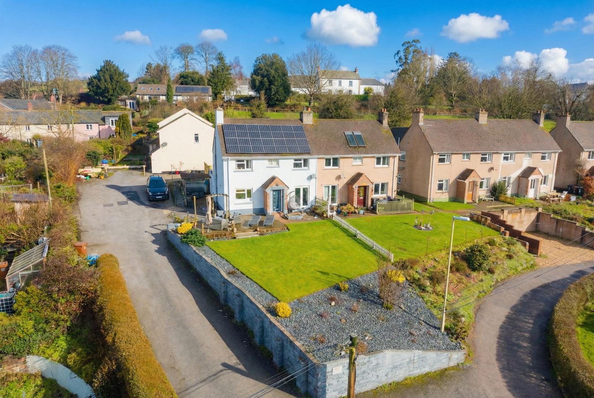 10 Snows is a semi-detached family home, set within the village, slightly elevated with some stunning views to the south, over the garden and onto surrounding countryside. Improved since it was first built, it now offers a flexible layout over two floors and the ground floor fourth bedroom and shower room add scope for those wanting to utilise a bedroom and facilities without needing to use the stairs. The layout offers a front to back living room with dual aspect and views/doors to the south facing gardens at the front. The good-sized kitchen/dining room provides ample space to create, entertain and enjoy, again with those views to the front. A useful laundry room, WC and shower link to the rear, which is home to the aforementioned fourth bedroom. On the first floor are three bedrooms and the family bathroom. Throughout is gas central heating and owned solar panels on the south facing roof reduce energy costs too.