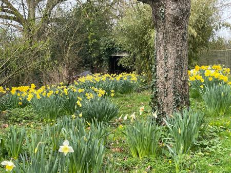 - Exceptional mature gardens with lawns, patios, vegetable beds, soft fruit, and apple trees.
