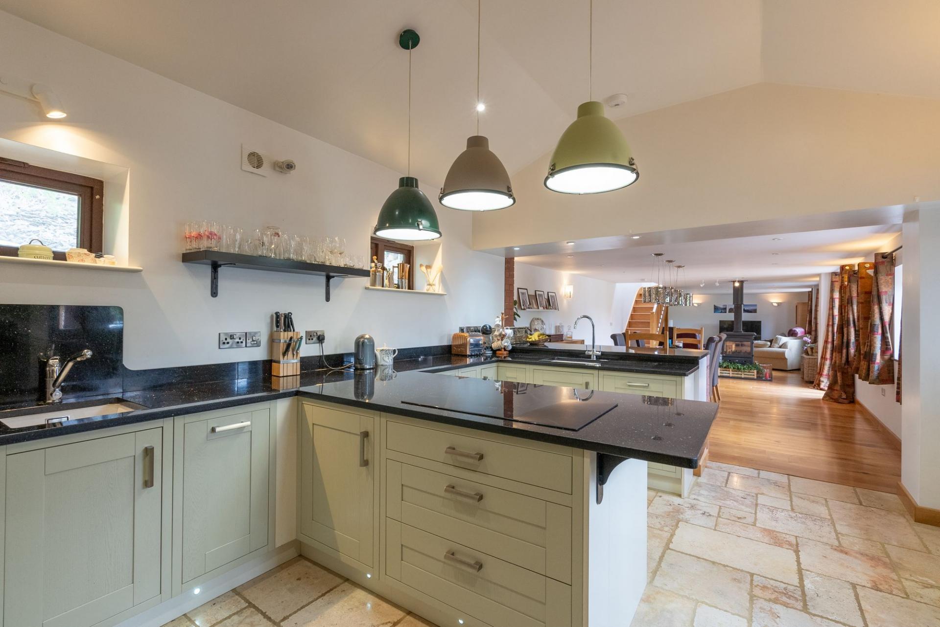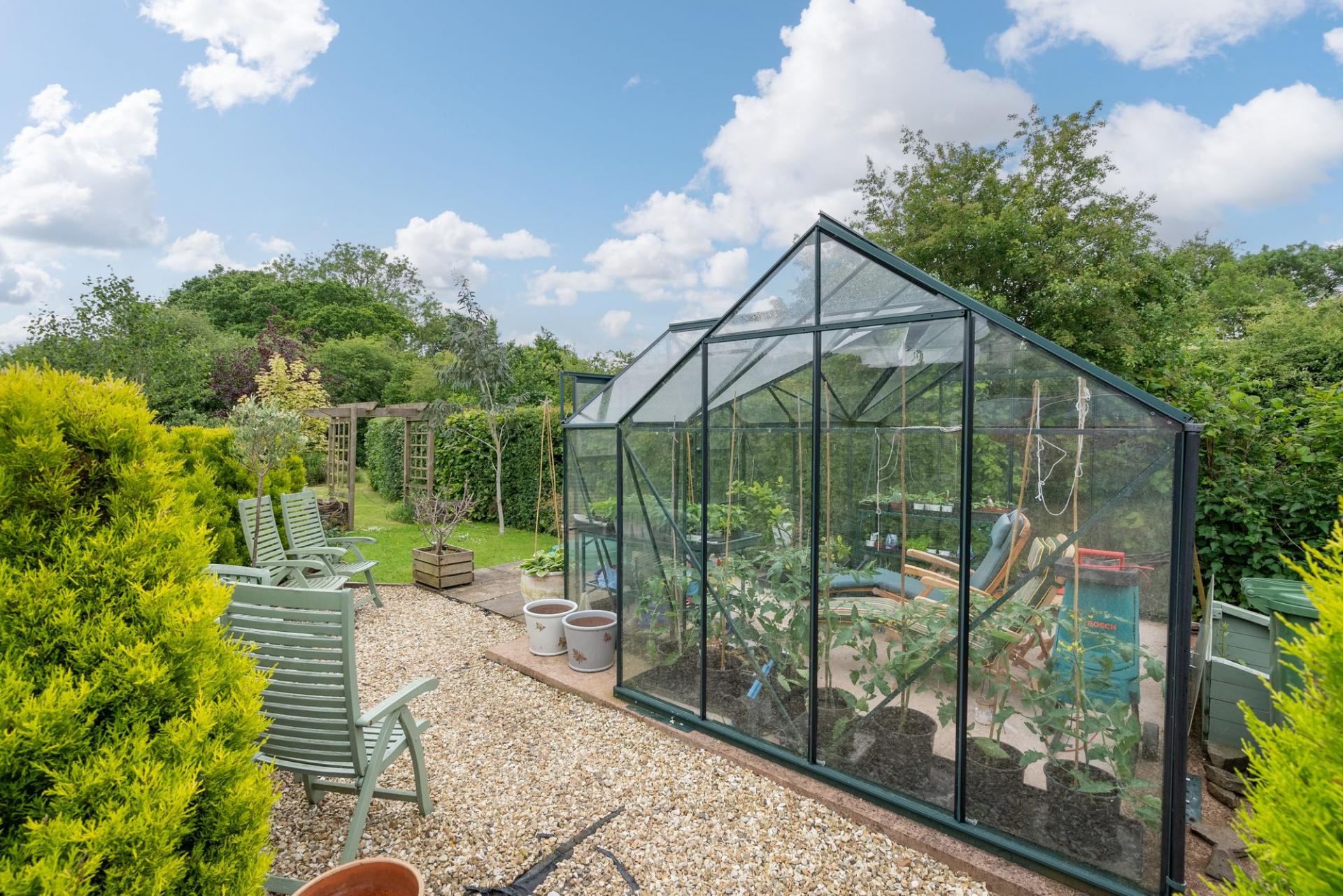 - Outbuildings including log cabin, polytunnel and greenhouse