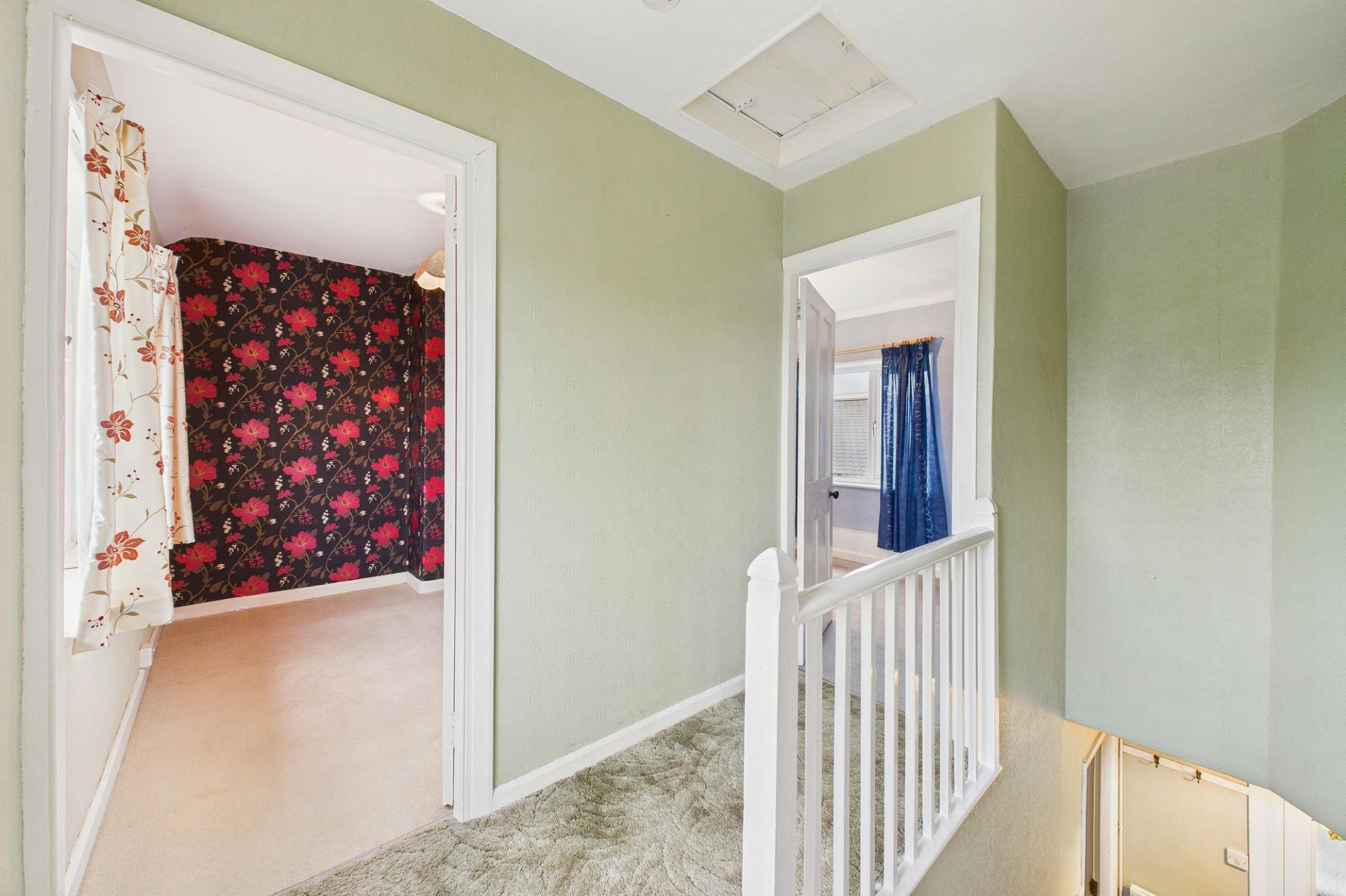 The accommodation is light and well proportioned, with three bedrooms upstairs and a straightforward layout that is easy to live with. The lounge has windows front and back and an oil-fired fire that heats the downstairs radiators, providing a practical and cosy focal point.