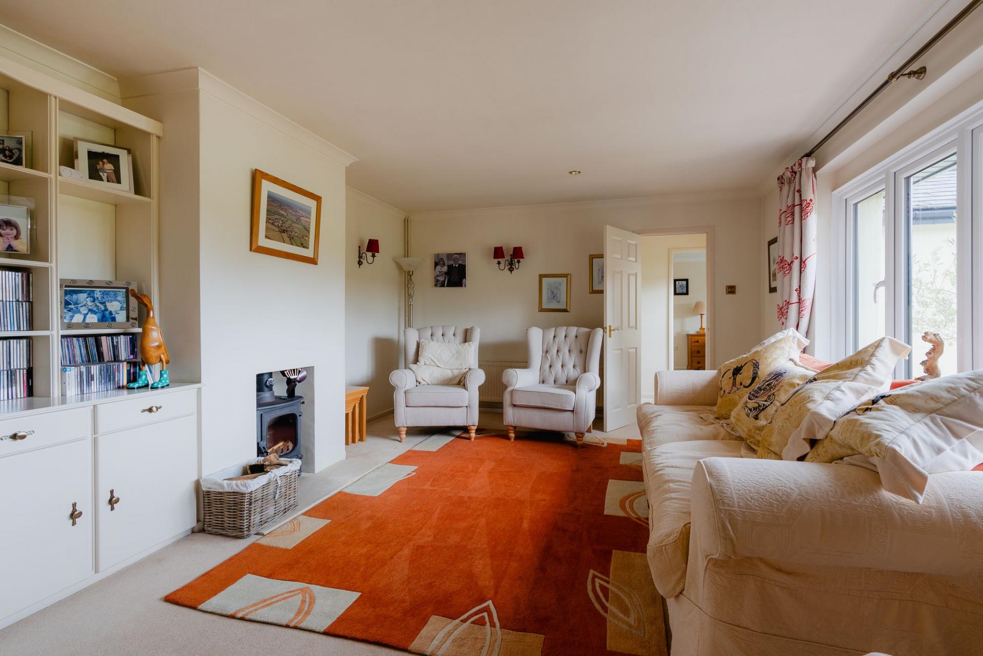Burghley is a beautifully presented country property, both inside and out. Occupying a third acre plot with views over the gardens and adjoining farmland, it’s a wonderful retreat. The property is deceptive from the front, it’s easy to picture a modest bungalow but it’s true size and style is seen from the rear with plenty of glass and a hint to the space on offer internally. It can be used as a bungalow or house with the bedrooms being split over the ground and first floor which really adds to the flexibility of how this property is used. We love the décor and presentation and are sure this will be appreciated by a new owner. The kitchen/dining room opens into a stunning garden room with views over the garden and fields and plenty of glass (opening) onto the outdoor seating areas. The light living room also enjoys the views and with built in storage and a wood-burner, it’s a cosy get away once the weather changes. As one would expect of a property like this, there’s a useful utility room, a walk in larder and a ground floor WC too. Two of the bedrooms can be found on the ground floor, away from the main living areas. Bedroom 2 has doors out to the garden and both this one and bedroom 3 have stylish, modern ensuite shower rooms. On the first floor, over half the space is taken up by the master suite. A large double bedroom with those incredible views and then an ensuite bathroom with separate bath and shower and a large walk in dressing room. There’s a useful study area on the first floor landing and then bedroom 4 completes the inside accommodation.