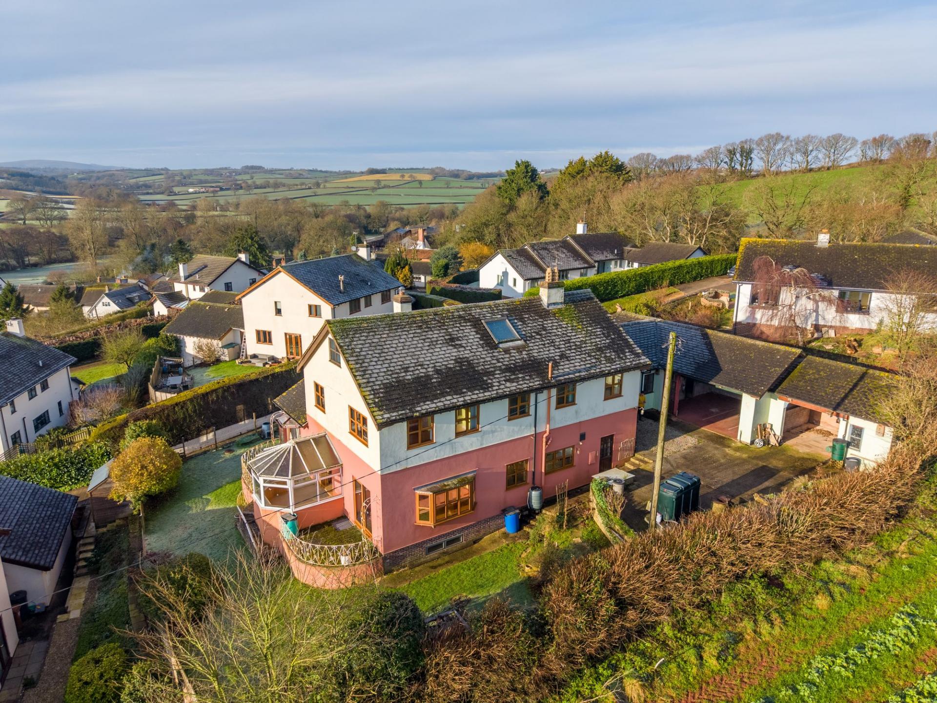 Built in the 1980’s, Eagle Lodge certainly offers a huge amount of living and hobby space. It’s located in a small residential cul-de-sac of just a handful of houses on the edge of Yeoford, a Mid Devon village just 10 minutes from Crediton, and 10 minutes to the A30 at Cheriton Bishop. The village has a small primary school (bus service to secondary in Crediton), a lovely Restaurant – The Duck – and unusually, it’s a village with a train station, linking to Crediton and Exeter in one direction and Barnstaple in the other.