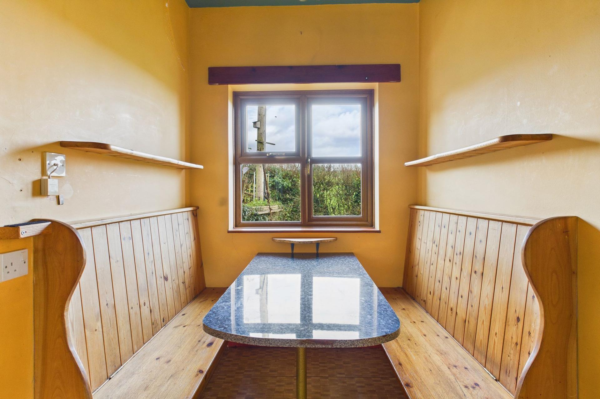 Internally, the layout is over 3 floors, plus the large boarded loft with windows. A bespoke spiral staircase runs between all floors. On the entrance level is a welcoming hallway with a large living room on the south side with a fireplace and opening to the conservatory. There’s a link through to the separate dining room too plus a “diner” style booth and through to the kitchen, (with rayburn, last used in May 2025 and serviced November 2023 ), and utility room (with door to rear garden). Completing this level is a study and useful WC. The lower ground floor overs a wonderfully flexible space and could be used for a multitude of things such as a cinema room, games room or gym. There’s a sauna and shower too and storage.