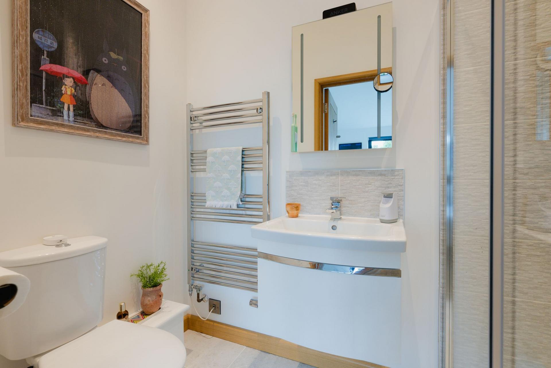 Upstairs the master bedroom has wonderful views out to Dartmoor and has an ensuite shower room with double head shower and vanity sink unit. The 2nd double has plenty of light from the electronically controlled Velux window with rain sensor & solar powered blind. The family bathroom also has the rain sensor Velux window and a bath with shower attachment, vanity sink and WC, there is an airing cupboard. The landing has a large storage area which holds an emergency immersion heater, and the whole 1st floor feels spacious and light. The heating is oil fired central heating with underfloor heating on the ground floor and radiators on the 1st floor, the windows are high quality aluminium double glazing.